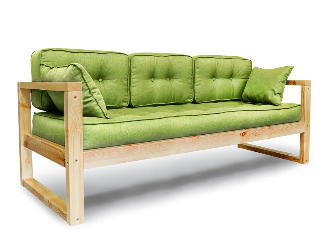 Диван изготовлен из массива сосны, выдерживает максимальную нагрузку до 140кг, рассчитан на трёх человек.