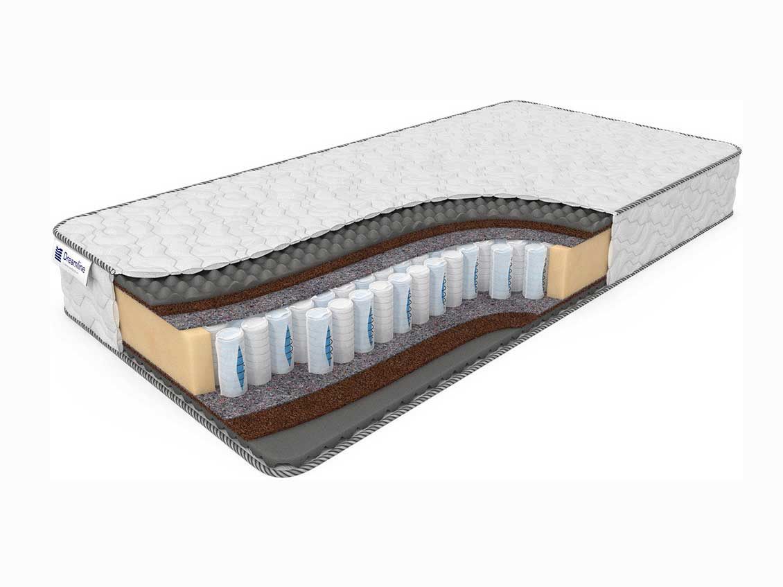 Слои из термовойлока защищают наполнители от губительного воздействия пружин, продлевая матрасу срок службы. Бикокос делает поверхность матраса более жесткой. Этот слой поддерживает позвоночник и придает матрасу ортопедический эффект. Также материал не задерживает влагу и хорошо вентилируется.Massage Memory – верхний слой матраса. Он состоит из пены, запоминающей анатомические особенности вашего тела, не пережимает мягкие ткани, благодаря чему кровь свободно циркулирует по телу. Материал имеет рельефную поверхность, которая оказывает легкий массажный эффект.