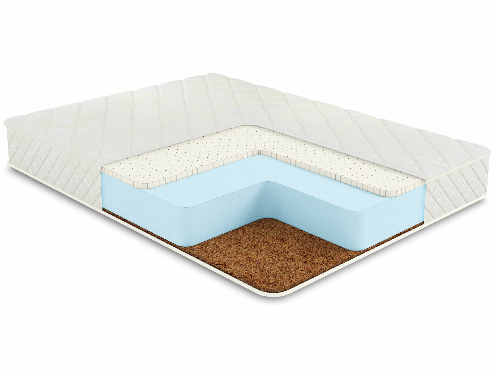Для полностью беспружинной модели данный матрас считается достаточно высоким – его толщина составляет 21 см. Изделие выдерживает нагрузку до 110 кг на спальное место. Все это стало возможным благодаря уникальным качественным наполнителям: у поверхностей матрас представлен натуральным латексом и кокосовой койрой, а в центре изделия установлен мощный блок искусственного латекса.