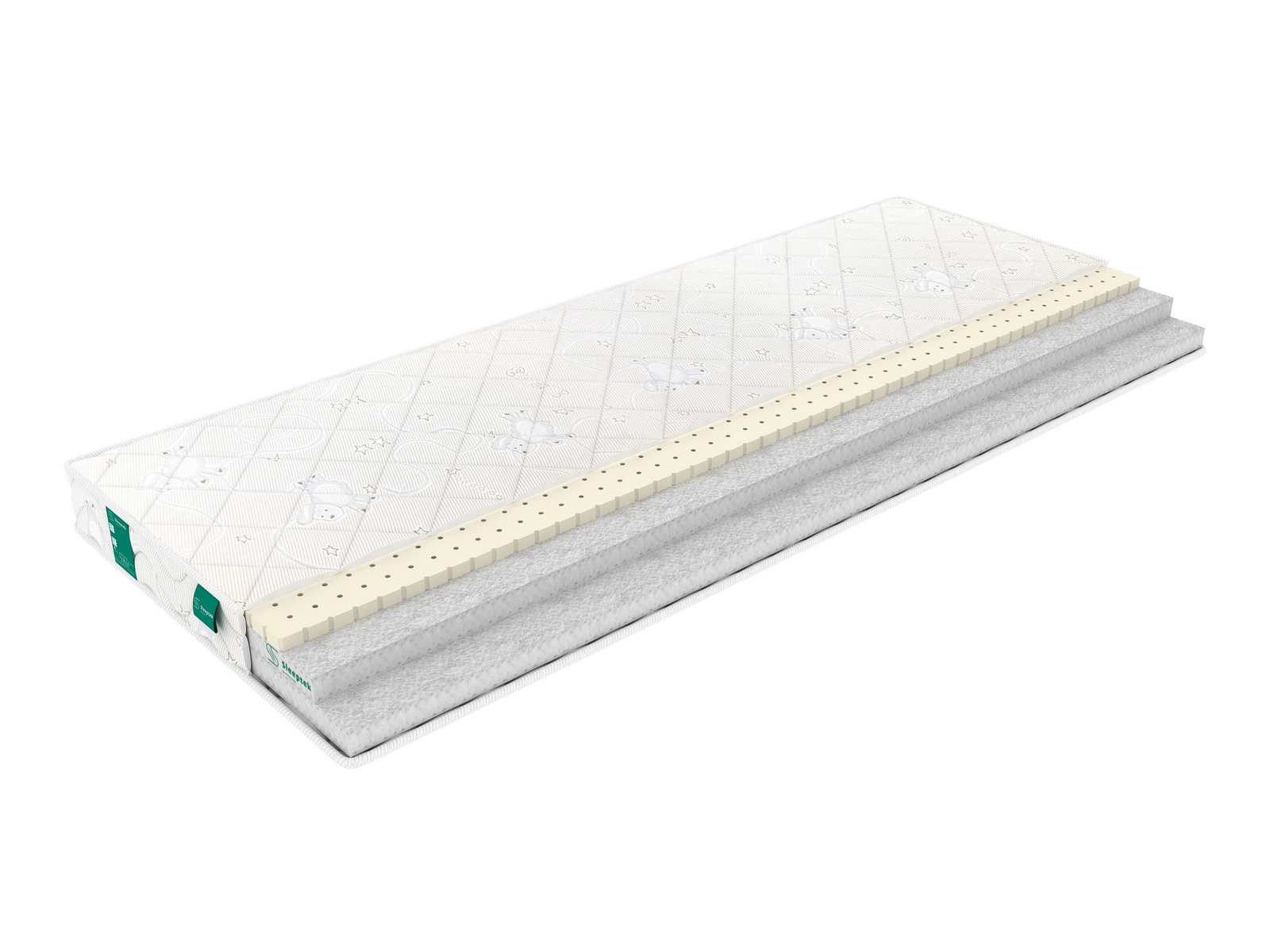 Жесткость сторон у этой модели различна. Одна сторона – умеренно мягкая, вторая – средней жесткости. Более мягкая сторона представлена натуральным латексом, материалом, который обладает способностью гибко подстраиваться под форму и вес тела и помогать расслаблению. Сон на этой стороне рекомендуется подросшим детям, чей позвоночник уже окреп.