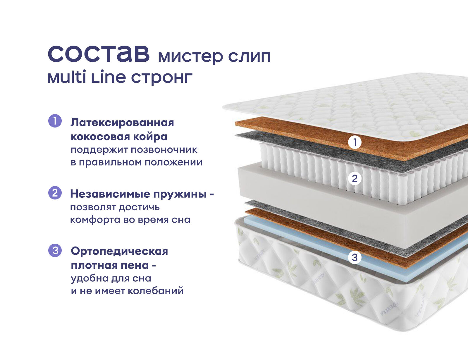 Комплект Джеффер + Мистер Слип Multi Line Стронг — идеальный союз минималистичного дизайна и усиленной ортопедической поддержки. Кровать с эргономичным основанием и матрас с градациями жесткости создают тандем для тех, кто ценит надёжность, здоровый сон и выгодные решения. Покупая комплект, вы экономите до 36% от стоимости и получаете не просто мебель, а систему, где каждая деталь работает на комфорт и долговечность.