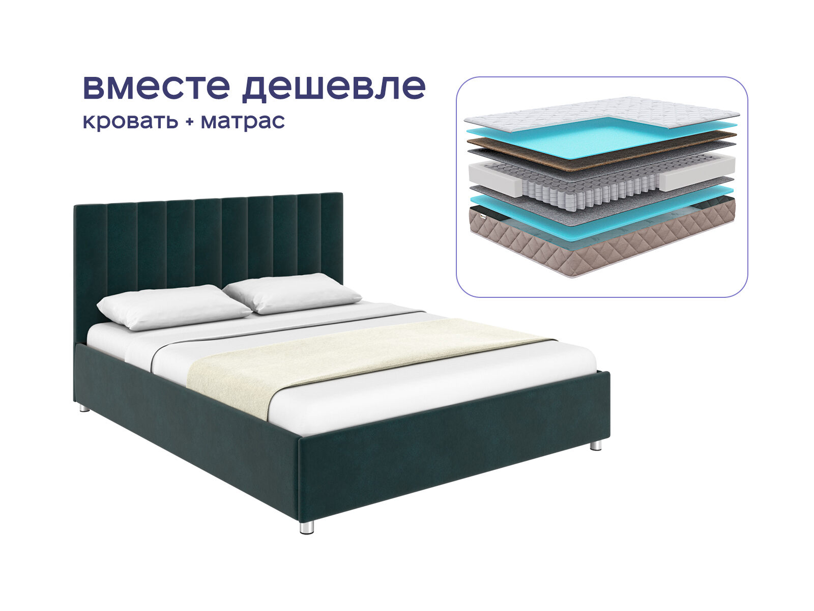 Модель отличается лаконичным изголовьем, которое украшает вертикальная параллельная стёжка. Стильная модель выделяется продуманным дизайном и украсит любой интерьер. Обивка кровати изготовлена из мягкого велюра. Мебельный короб производится из ДСП. В комплект входит ортопедическое металлическое разборное основание.