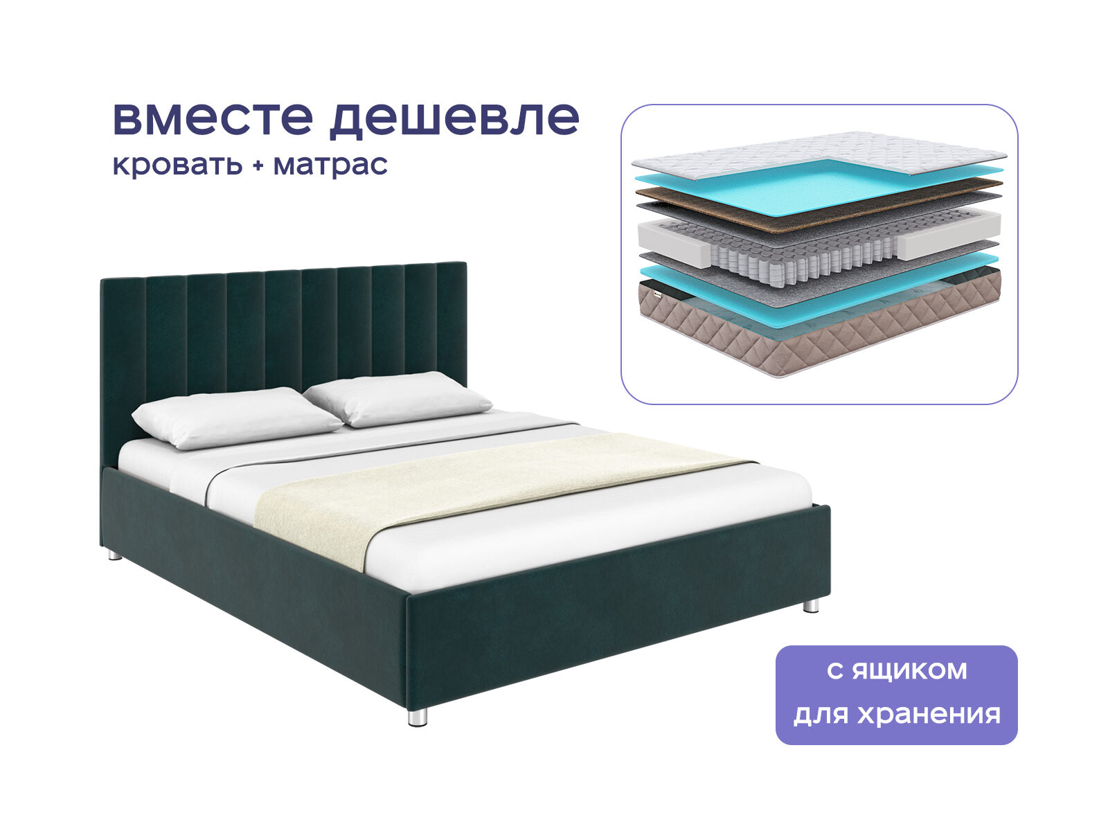 Модель отличается лаконичным изголовьем, которое украшает вертикальная параллельная стёжка. Стильная модель выделяется продуманным дизайном и украсит любой интерьер. Обивка кровати изготовлена из мягкого велюра. Мебельный короб производится из ДСП. В комплект входит ортопедическое металлическое разборное основание с подъемным механизмом.