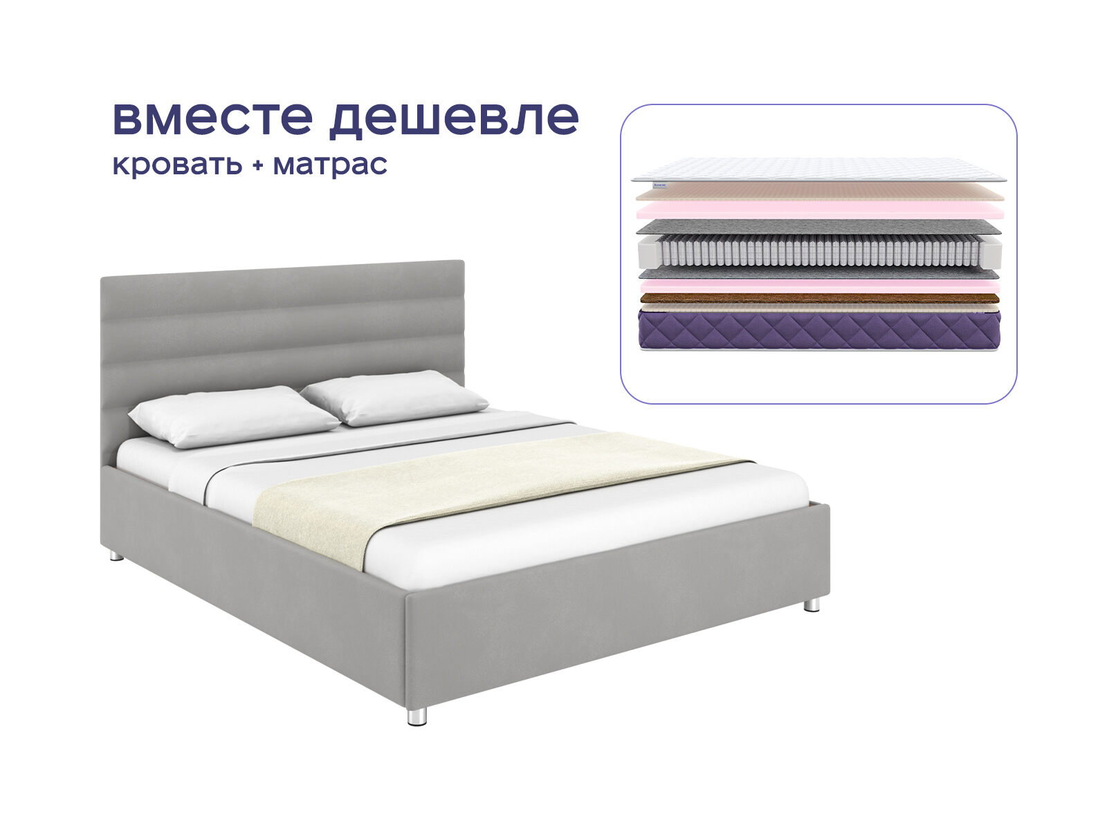 Кровать получила изящно выполненное стильное изголовье. Мягкая горизонтальная стёжка украшает модель и создаёт очень уютное пространство. Лаконичный и минималистичный дизайн позволяет универсально вписать мебель в любой современный интерьер. Кровать исполняется в обивке из велюра, которая имеет красивую мягкую фактуру и легко чистится. Сама кровать – её царги и изголовье изготавливается из прочного и надёжного ДСП. В комплект входит ортопедическое металлическое разборное основание.