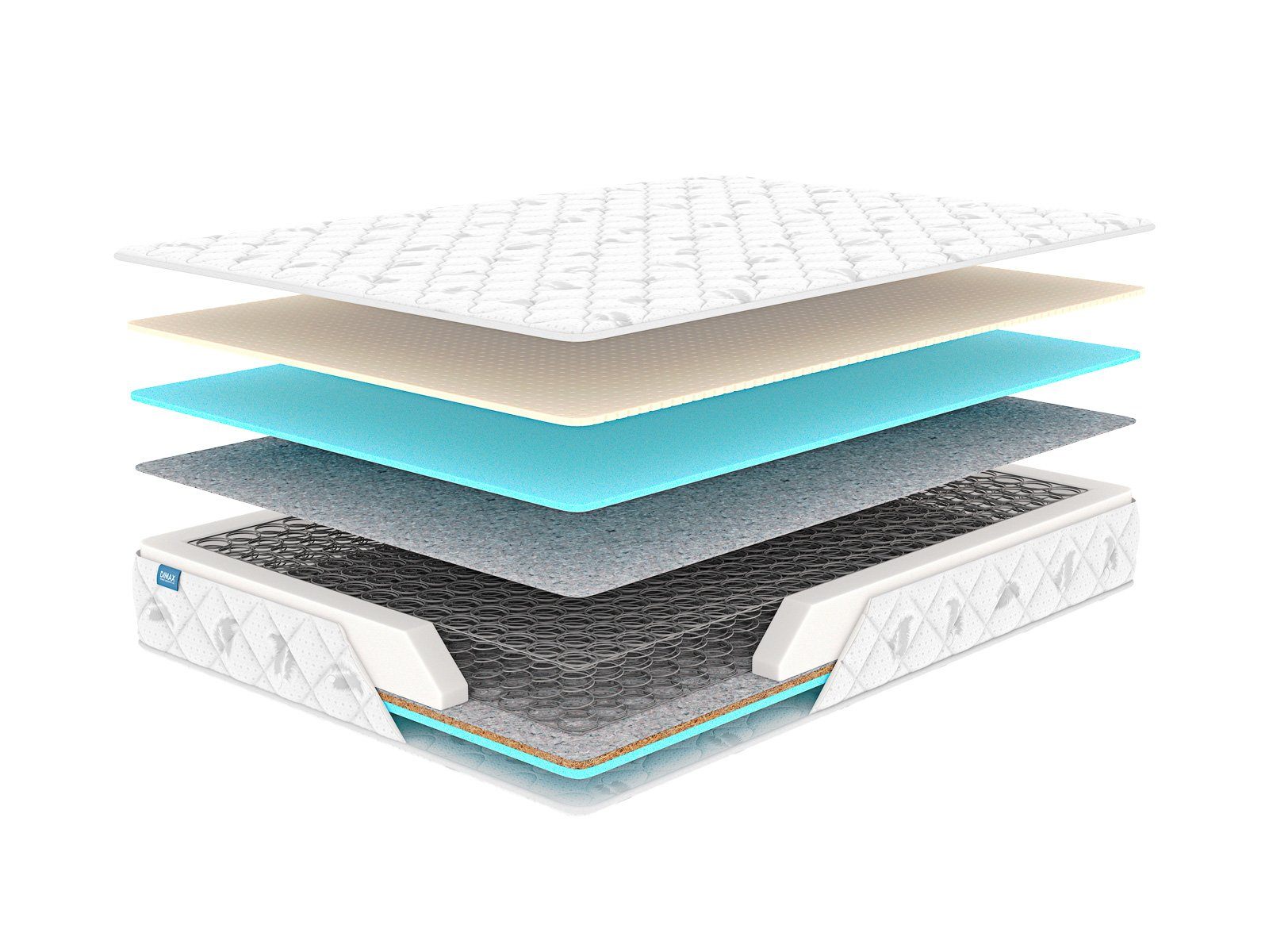 Центром модели служит зависимый пружинный блок Боннель. Все спирали внутри конструкции скреплены особой сцепкой. Это сделано для того, чтобы детали минимально соприкасались друг с другом и не тёрлись о соседние элементы. Благодаря такой конструкции скрип в матрасе максимально нивелируется. Производитель дополнительно изолировал пружинный блок термовойлоком, чтобы матрас прослужил ещё дольше.