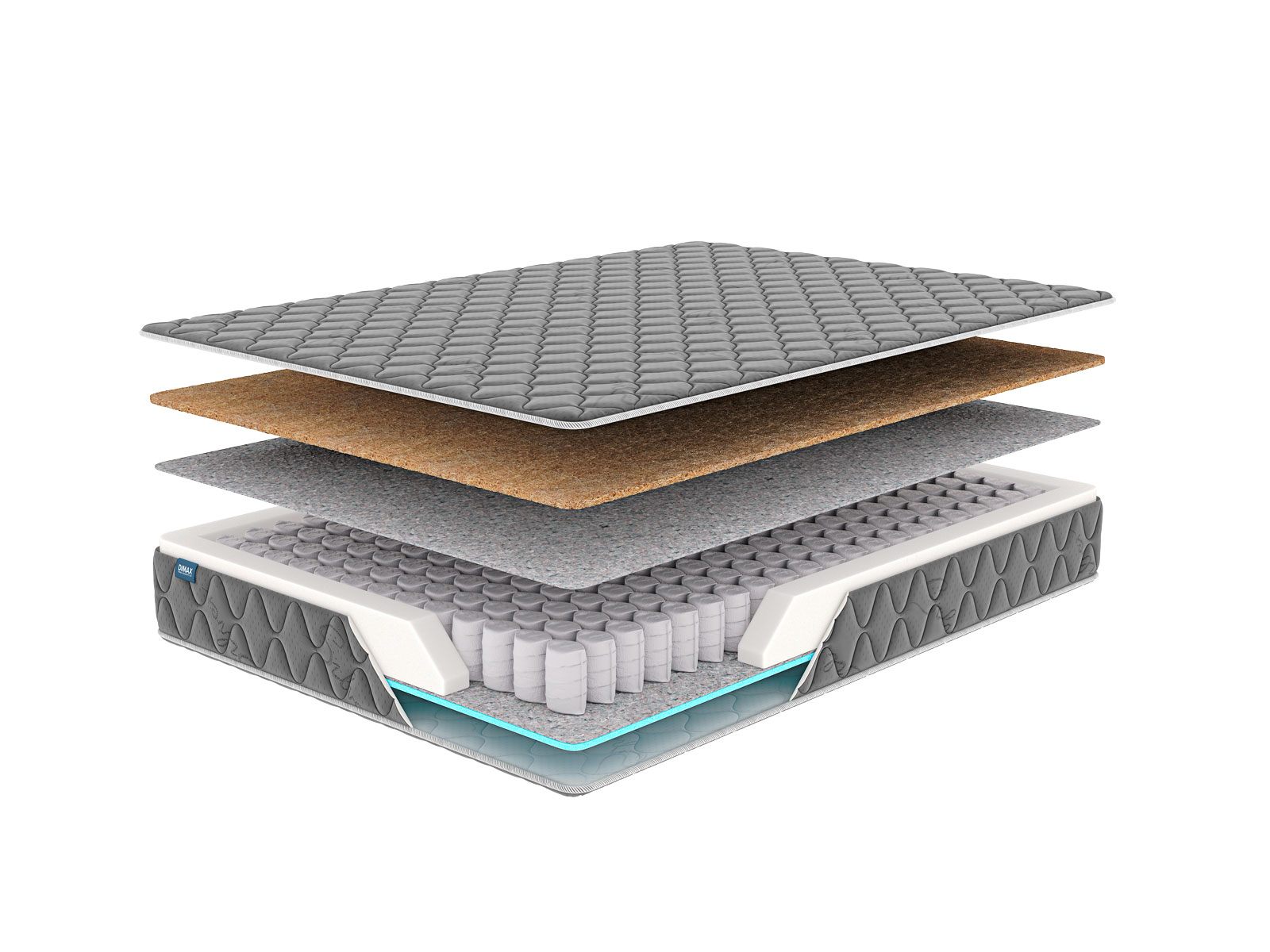 Сторона с уровнем жёсткости выше среднего проложена натуральной койрой кокоса. Материал даёт усиленную поддержку спине и телу.