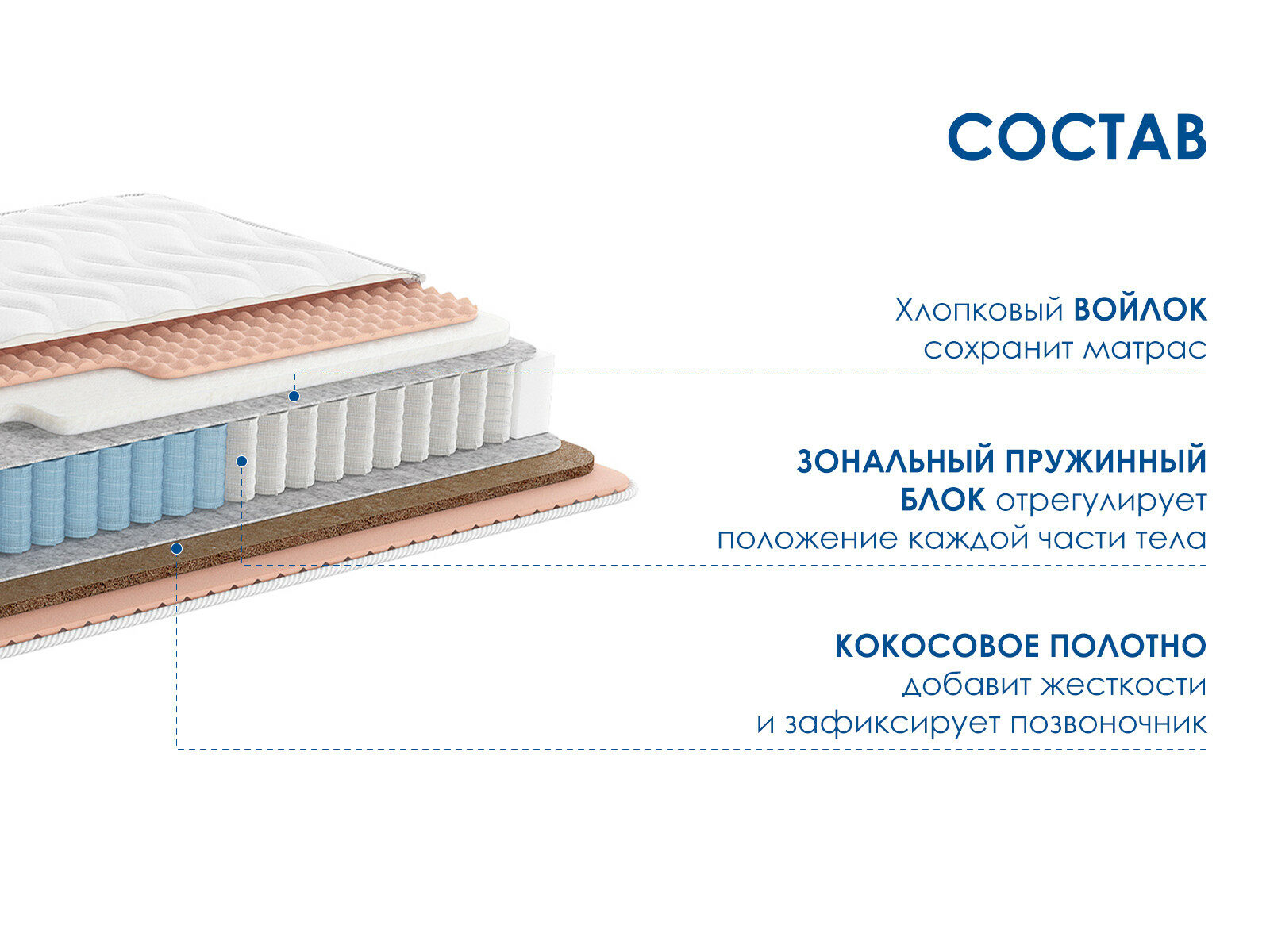 Димакс Relmas Solid 3Zone – ортопедический матрас с массажным эффектом, созданный для тех, кто предпочитает поддерживающие спальные поверхности с выраженной жесткостью. Разные уровни мягкости сторон позволяют выбрать оптимальный вариант комфорта, а зональный пружинный блок обеспечивает анатомически точную поддержку.