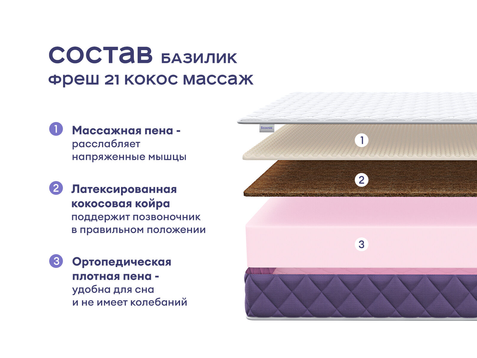 Комплект Риос + Базилик Фреш 21 Кокос Массаж — гармония лаконичного дизайна и инновационного комфорта. Кровать без изголовья, создающая эффект разгрузки пространства и простора, а также беспружинный матрас с массажным эффектом образуют идеальный тандем для тех, кто ценит современную эстетику, заботу о здоровье и выгодные решения. Сэкономьте до 36% от стоимости приобретая товары комплектом.