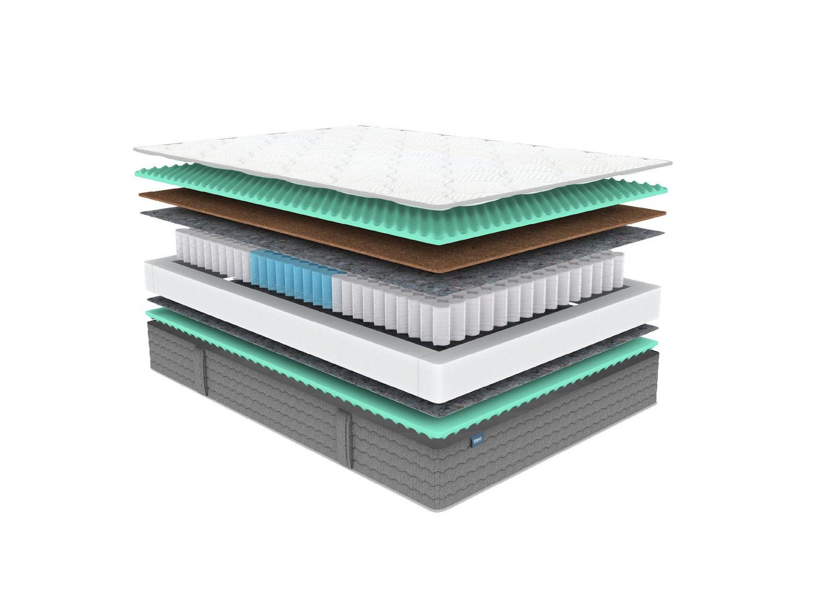 Матрас сочетает зонированную поддержку независимых пружин, комфорт микромассажной пены и надёжную кокосовую койру, создавая адаптивное спальное место для здорового сна.