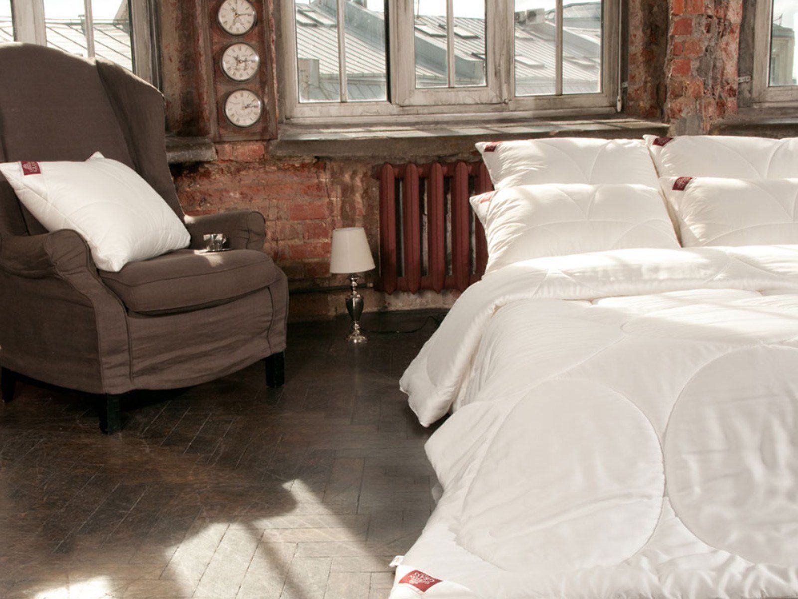 Для круглогодичного использования одеяло выполнено с большим количеством наполнителя.