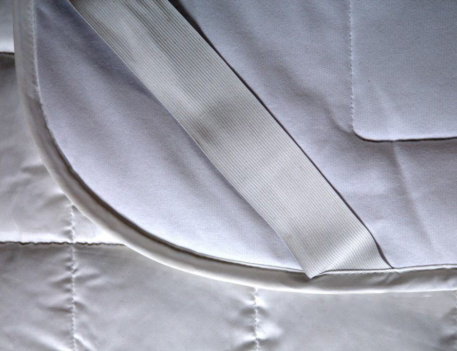 Эксклюзивная стежка наматрасника позволяет исключить миграцию наполнителя при активной эксплуатации. Края выполнены с использованием окантовки. Благодаря широким эластичным лентам по углам достигается надежное крепление к матрасу и плотная фиксация.