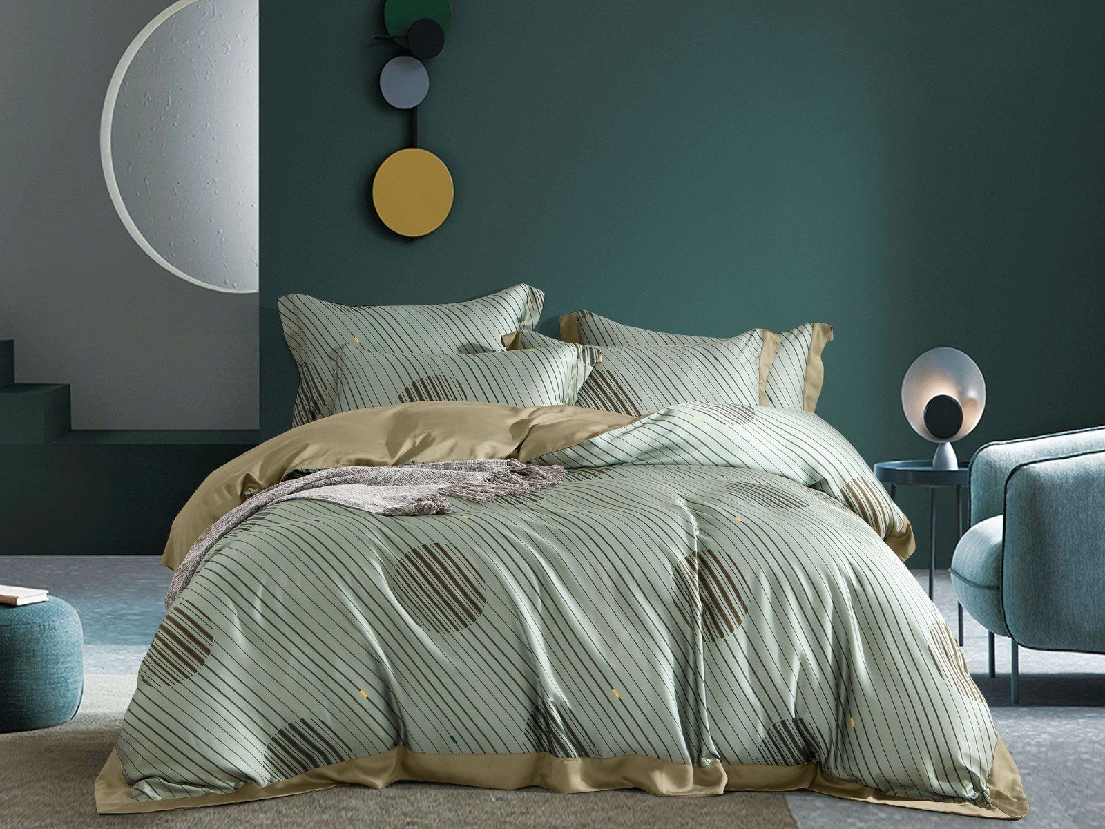 Стильный дизайн Maelis выполнен в легкой абстрактно-геометрической игре, которая делает данный комплект интересным и запоминающимся. Сдержанные природные оттенки украшают роскошные переливы ткани.