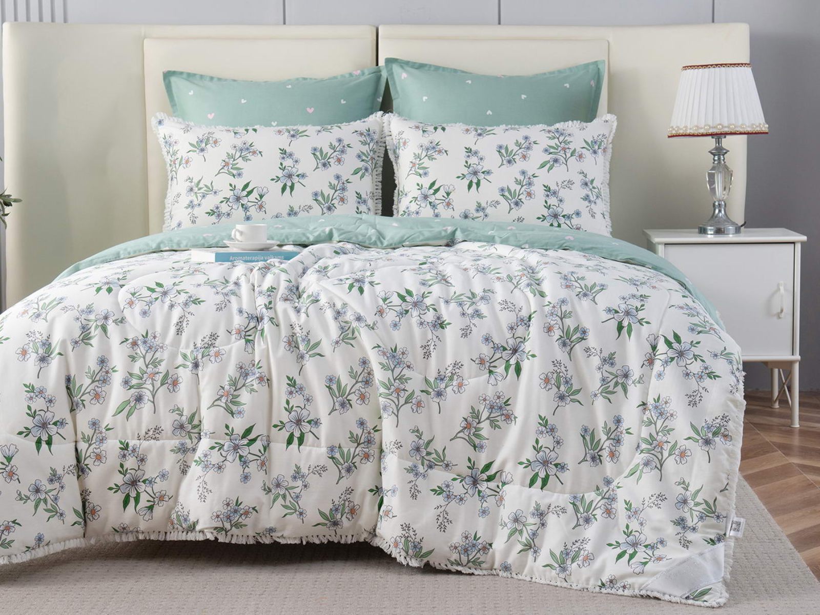 В комплекты комфортеров с одеялом Бернадетт входят наволочки, простыня и легкое всесезонное одеяло. Оцените это современное и очень удобное решение, которое идеально подходит тем, кто не любит возиться с пододеяльниками.