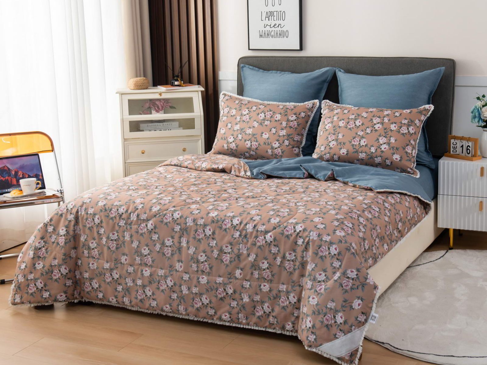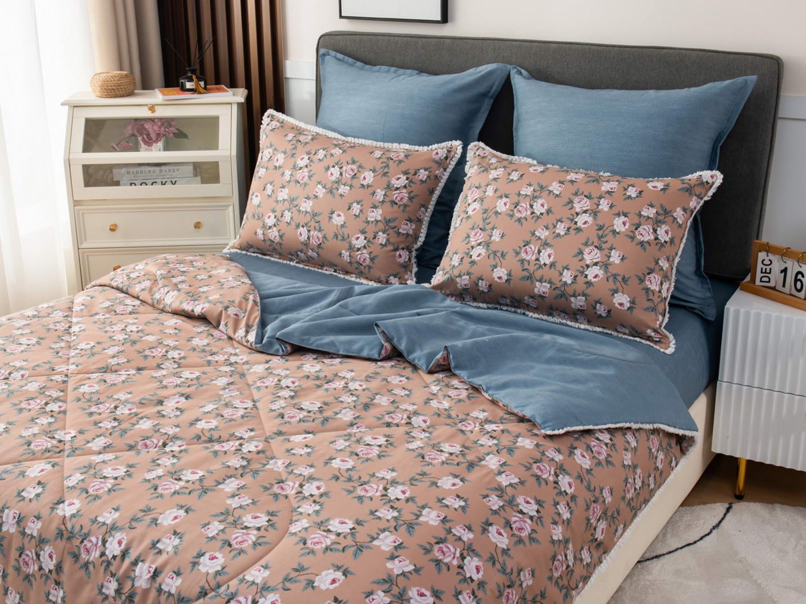 В комплекты комфортеров с одеялом Бернадетт входят наволочки, простыня и легкое всесезонное одеяло. Оцените это современное и очень удобное решение, которое идеально подходит тем, кто не любит возиться с пододеяльниками.
