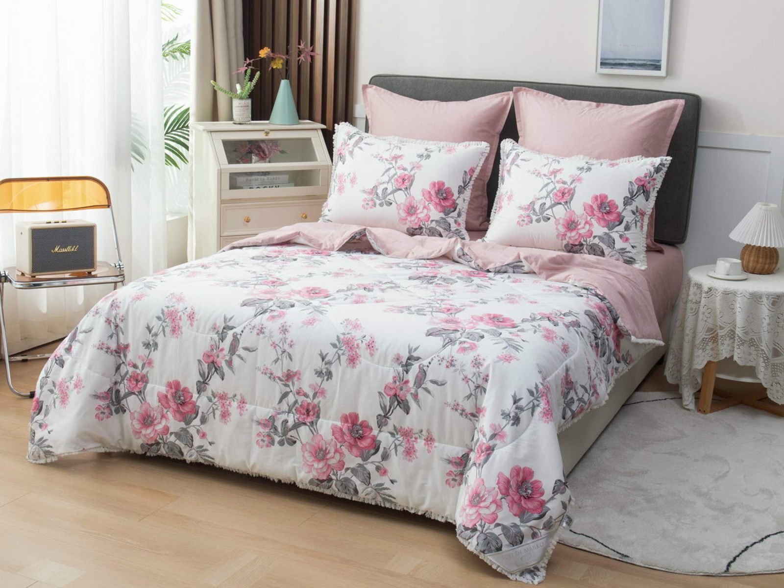В комплекты комфортеров с одеялом Бернадетт входят наволочки, простыня и легкое всесезонное одеяло. Оцените это современное и очень удобное решение, которое идеально подходит тем, кто не любит возиться с пододеяльниками.
