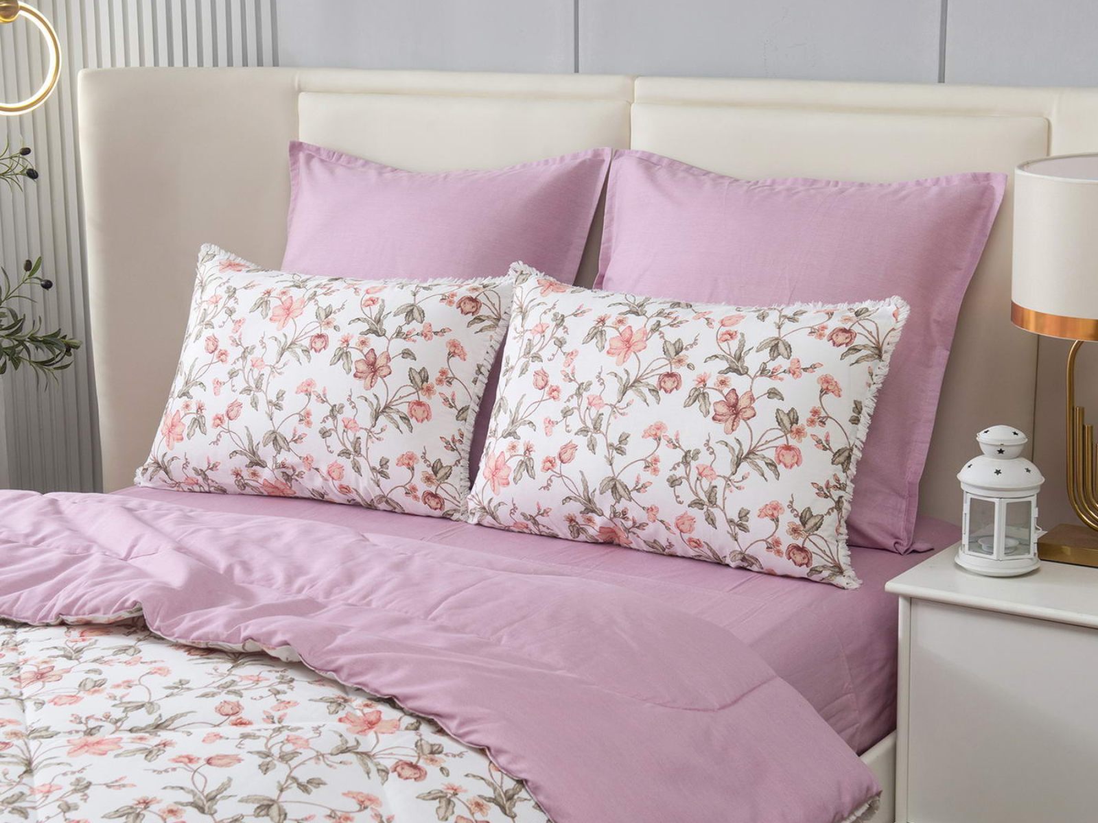 В комплекты комфортеров с одеялом Бернадетт входят наволочки, простыня и легкое всесезонное одеяло. Оцените это современное и очень удобное решение, которое идеально подходит тем, кто не любит возиться с пододеяльниками.