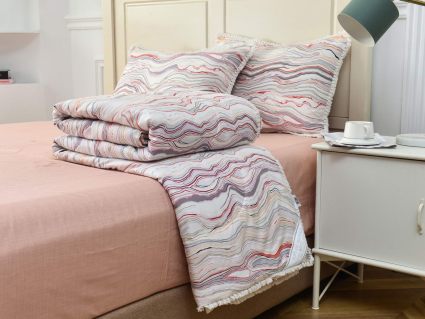 В комплекты комфортеров с одеялом Бернадетт входят наволочки, простыня и легкое всесезонное одеяло. Оцените это современное и очень удобное решение, которое идеально подходит тем, кто не любит возиться с пододеяльниками.