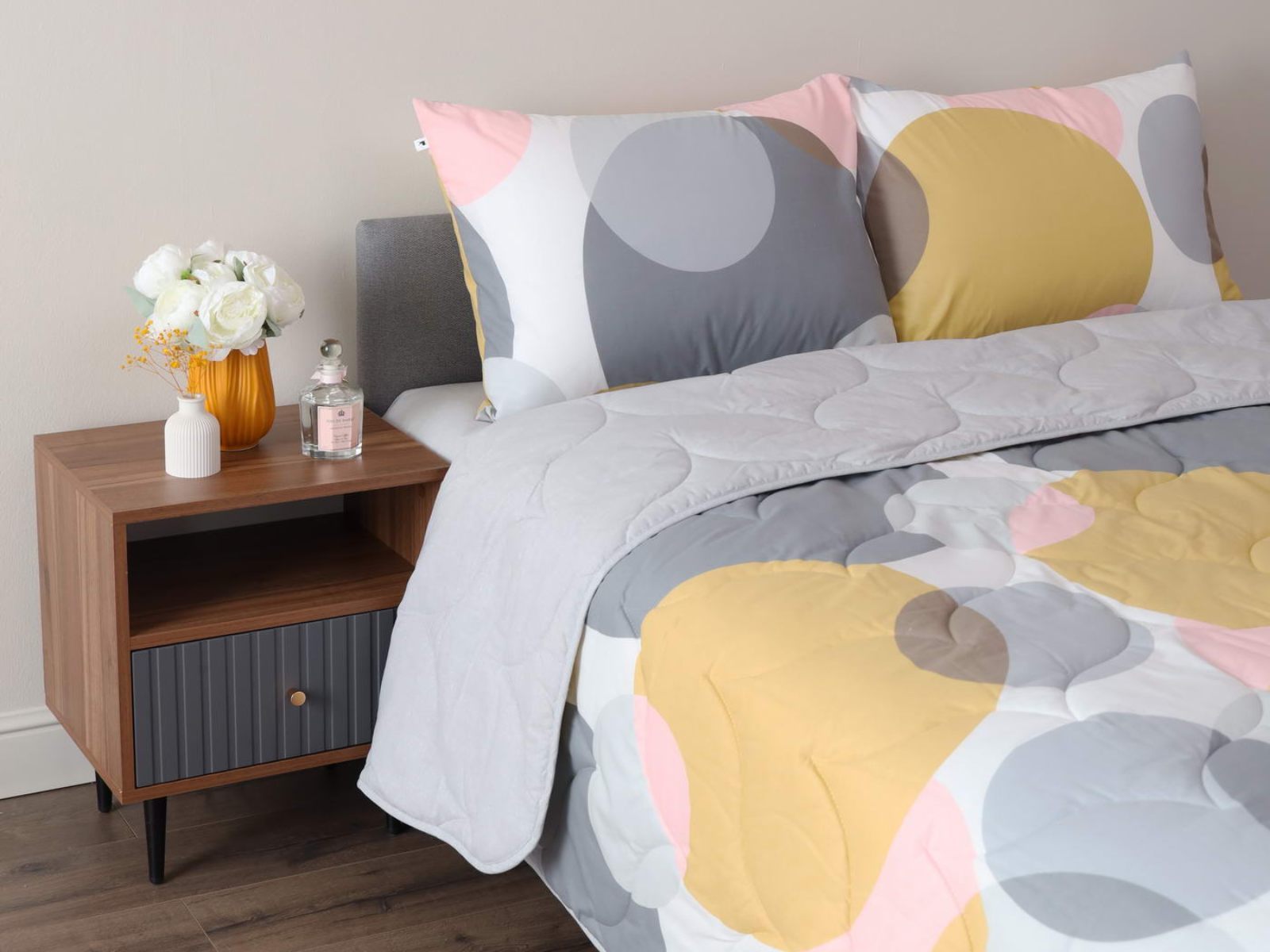 Комплект постельного белья с одеялом Мелвин – это прекрасное сочетание цены и качества. Комплект порадует многообразием цветов и принтов. Геометрия или цветочные узоры – вы с легкостью подберете нужный комплект! Двустороннее всесезонное одеяло можно стелить лицевой или оборотной стороной, в зависимости от настроения.