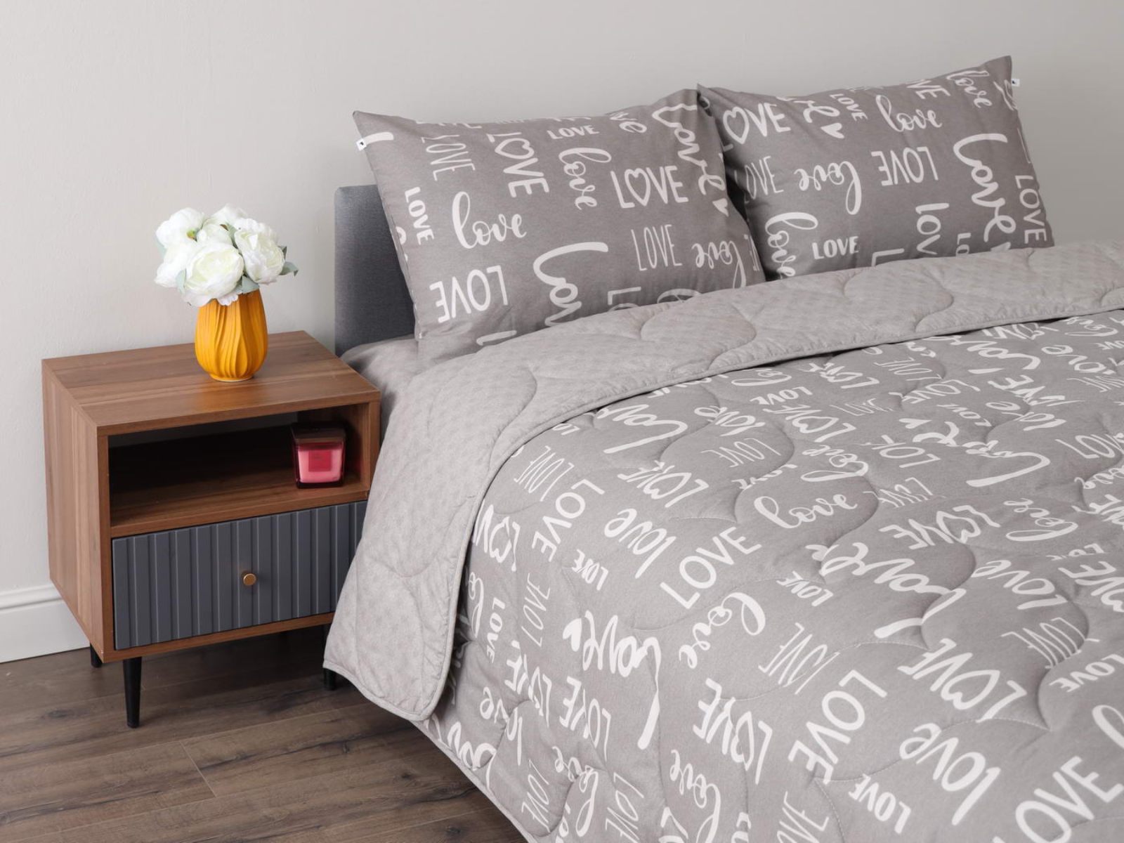 Комплект Мелвин легко стирается в обычной машине в бережном режиме и также легко гладится.