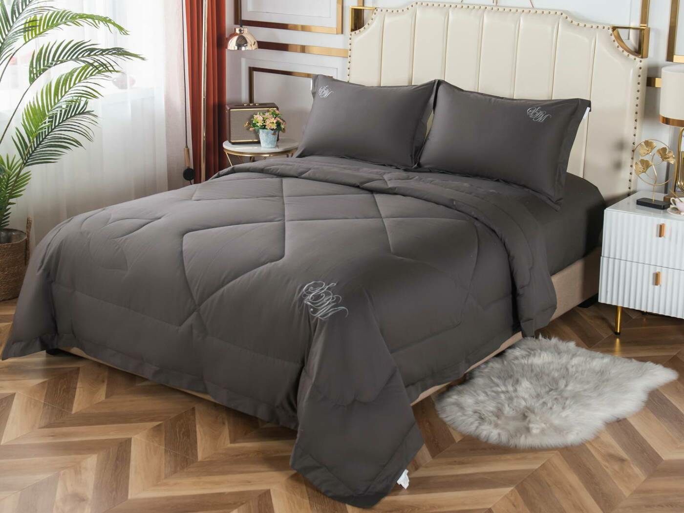 В комплект входят простыня, наволочки и одеяло. Одеяло простеганное, легкое и воздушное, его можно стирать в стиральной машине. Благодаря микроволокну в составе наполнителя для одеяла, оно всегда принимает свою начальную форму.