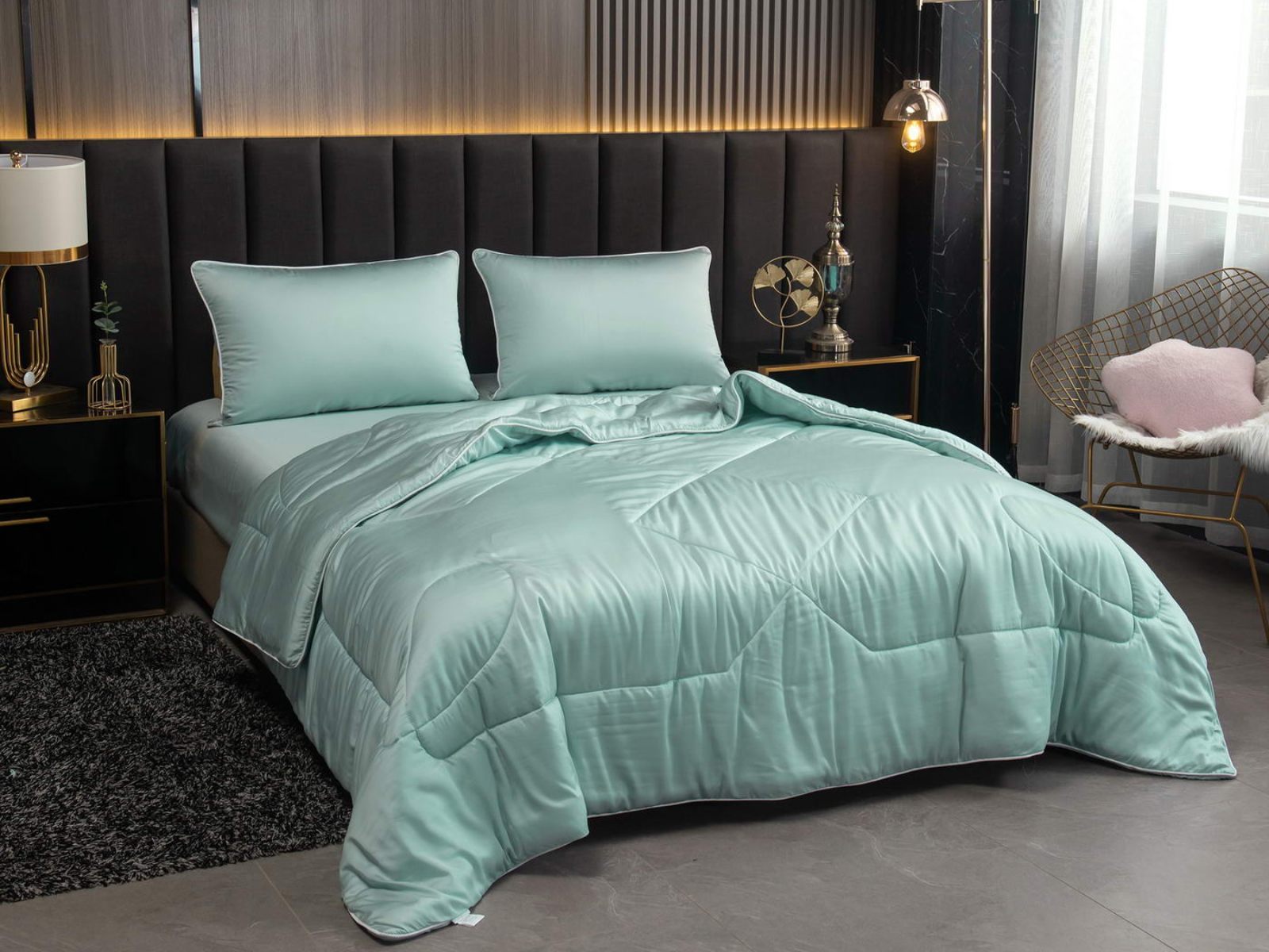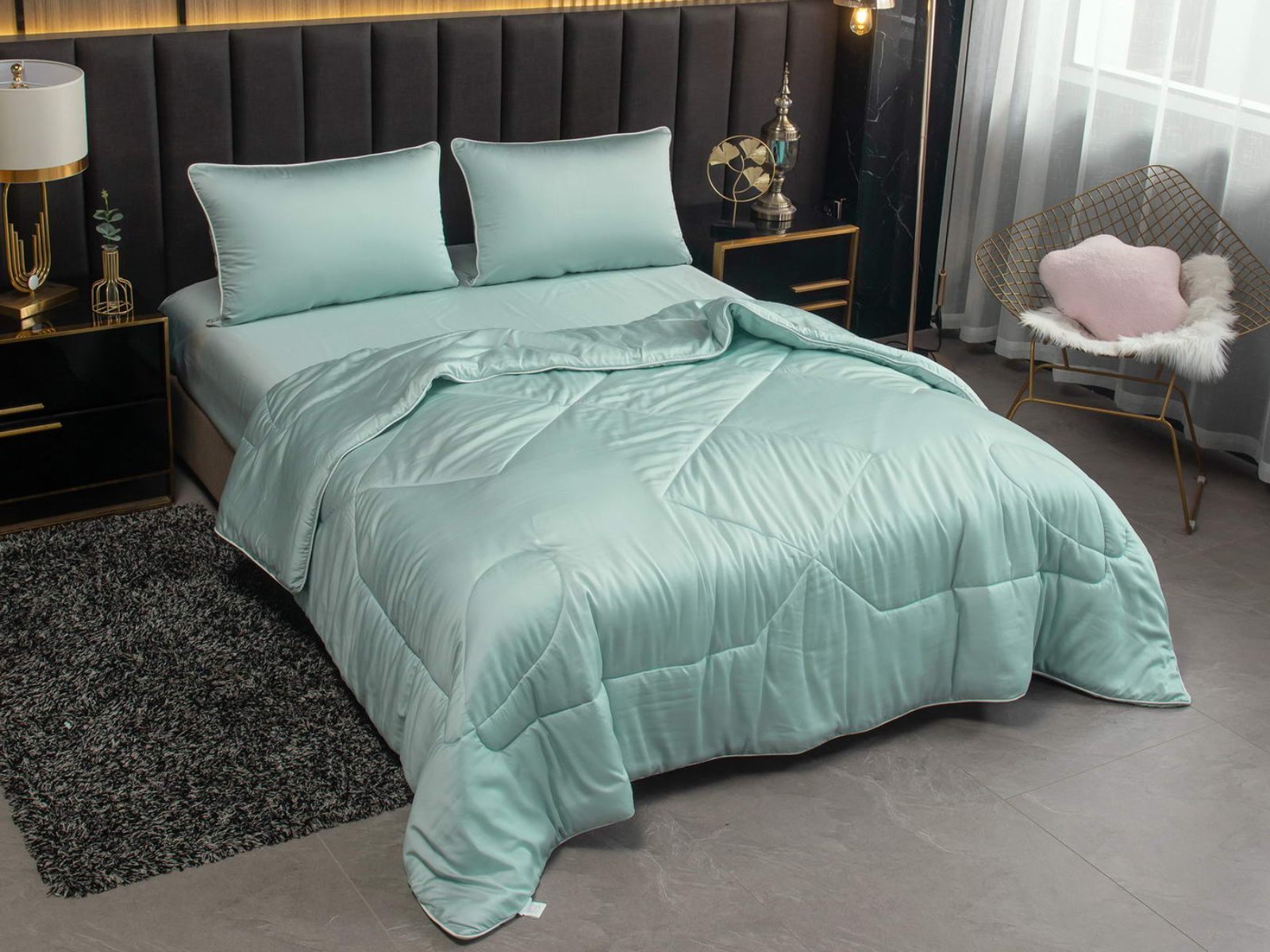 Палитра однотонных комплектов с одеялом Рафаэль – это десять актуальных оттенков. Комплект постельного белья оформлен контрастным кантом на одеяле и наволочках, застегивается на молнию. Одеяло декорировано красивой строчкой, что добавляет изысканности. Комфортеры станут настоящим украшением вашей спальни.
