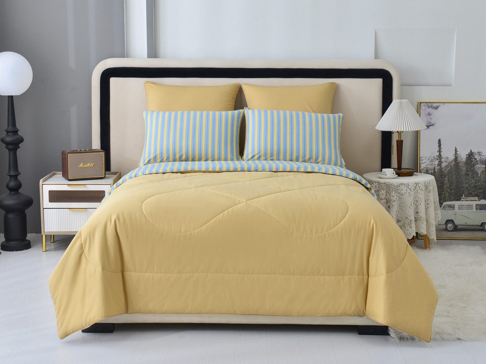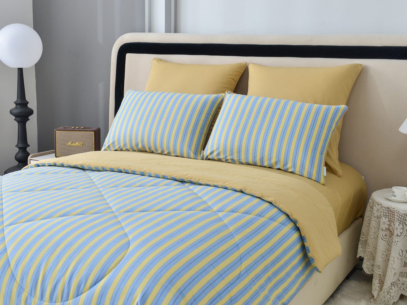 Особенность: двусторонняя модель, наволочки и одеяла декорированы кантом.