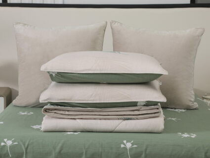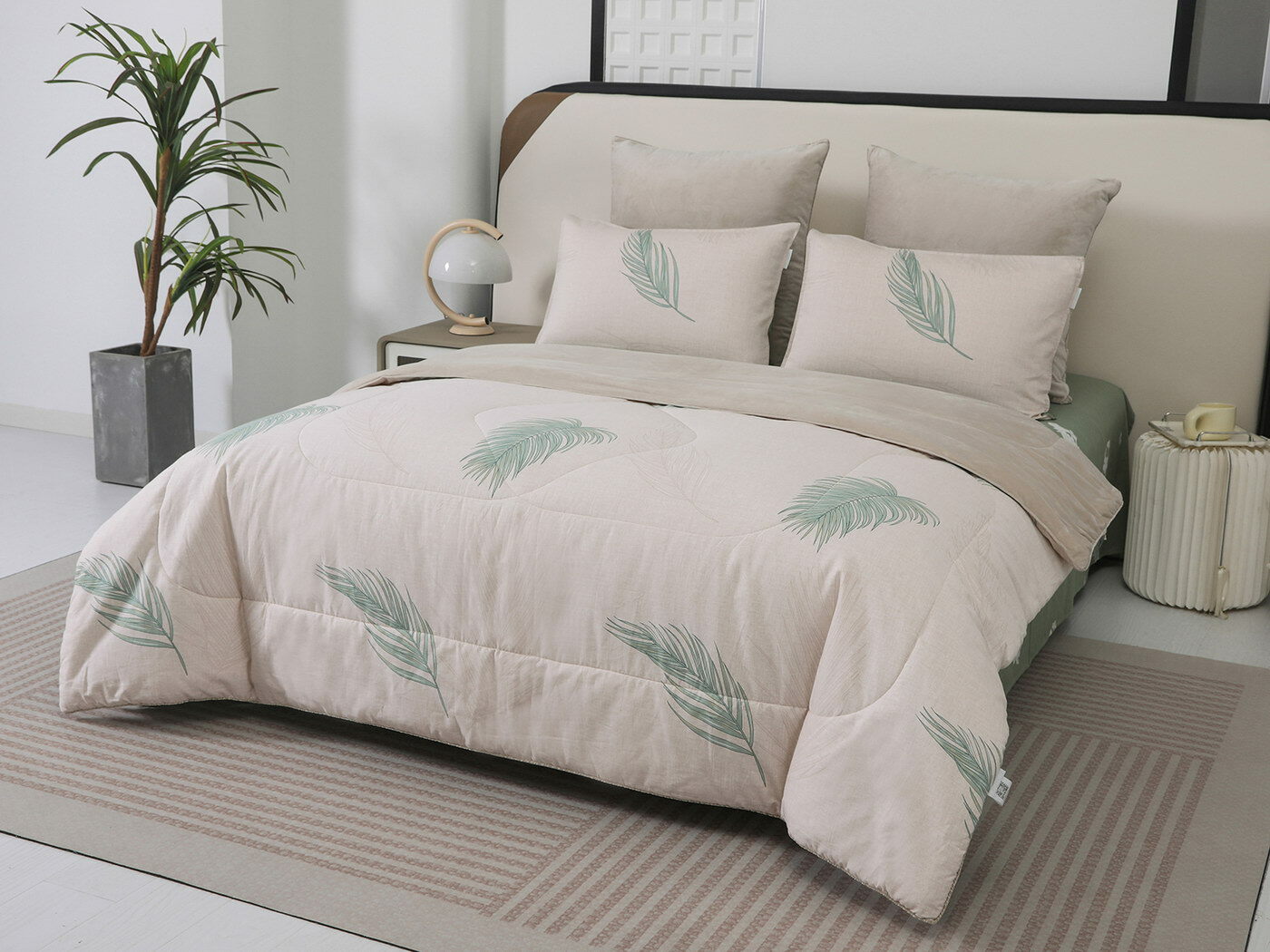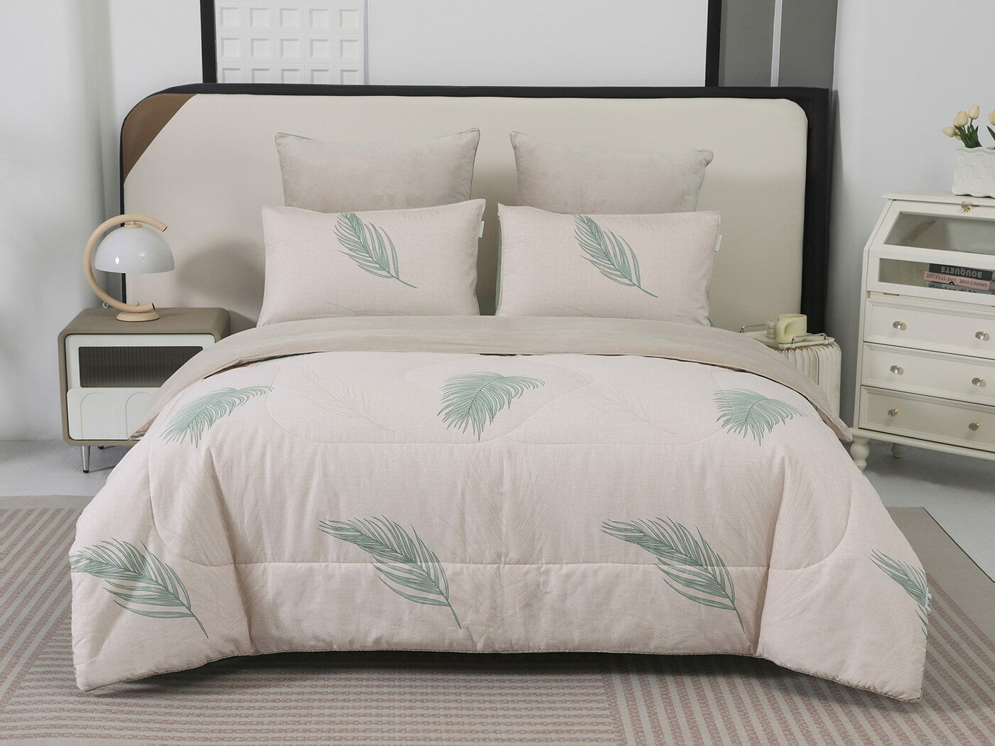 Обратная сторона одеяла – принтованный сатин натуральный хлопковый материал. На ощупь нежная и шелковистая, при этом комфортная и прочная ткань.