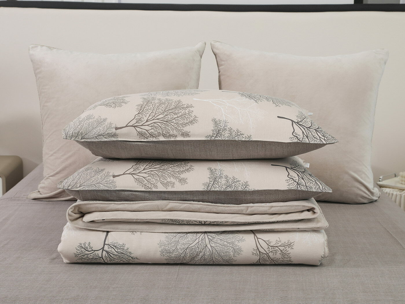 Обратная сторона одеяла – принтованный сатин натуральный хлопковый материал. На ощупь нежная и шелковистая, при этом комфортная и прочная ткань.