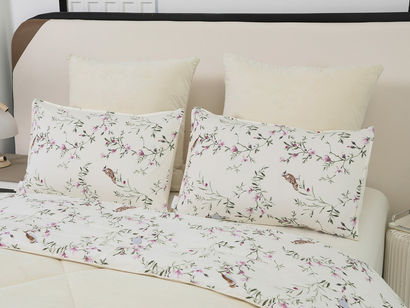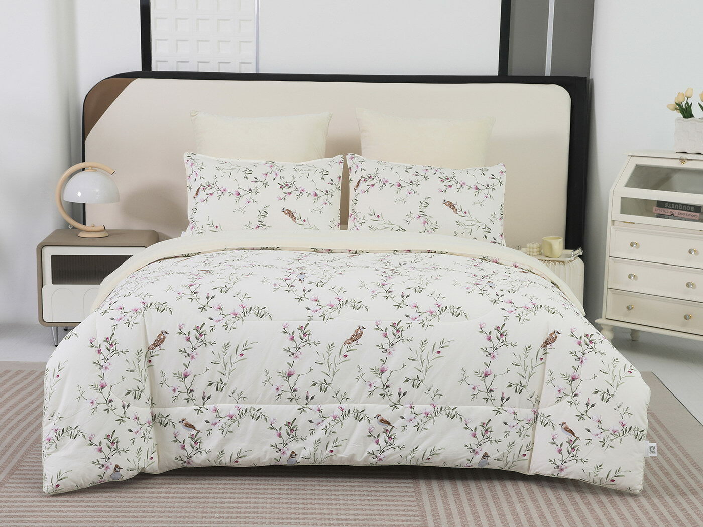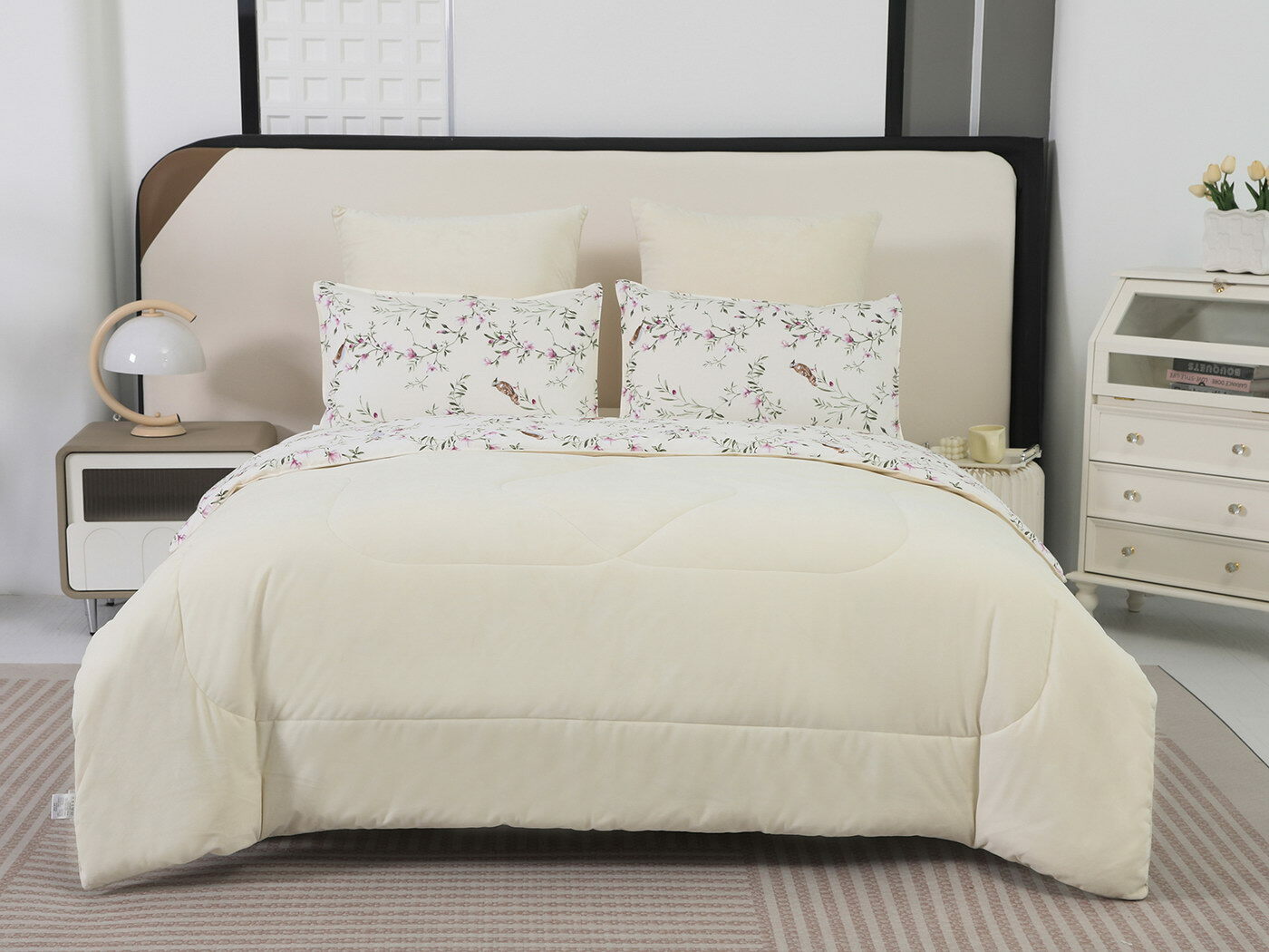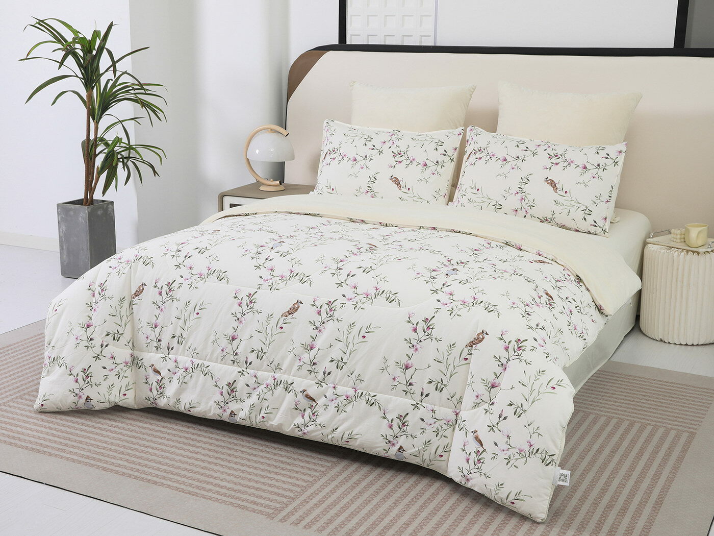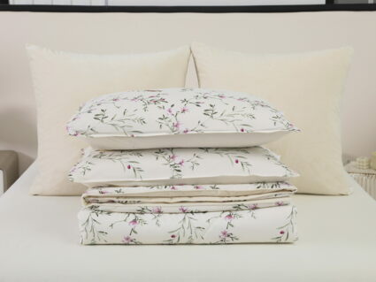 Обратная сторона одеяла – принтованный сатин натуральный хлопковый материал. На ощупь нежная и шелковистая, при этом комфортная и прочная ткань.