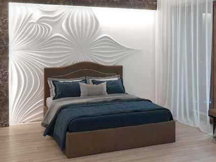 Роскошная и классическая модель кровати с волнообразным изголовьем выглядит дорого и привлекательно, подойдет к любому интерьерному стилю. Она удобна не только для сна, но и для отдыха в положении сидя и хранения вещей в комнате, благодаря вместительному ящику для хранения. Кровать укомплектована ортопедическим основанием с подъемным механизмом и комплектом дна.