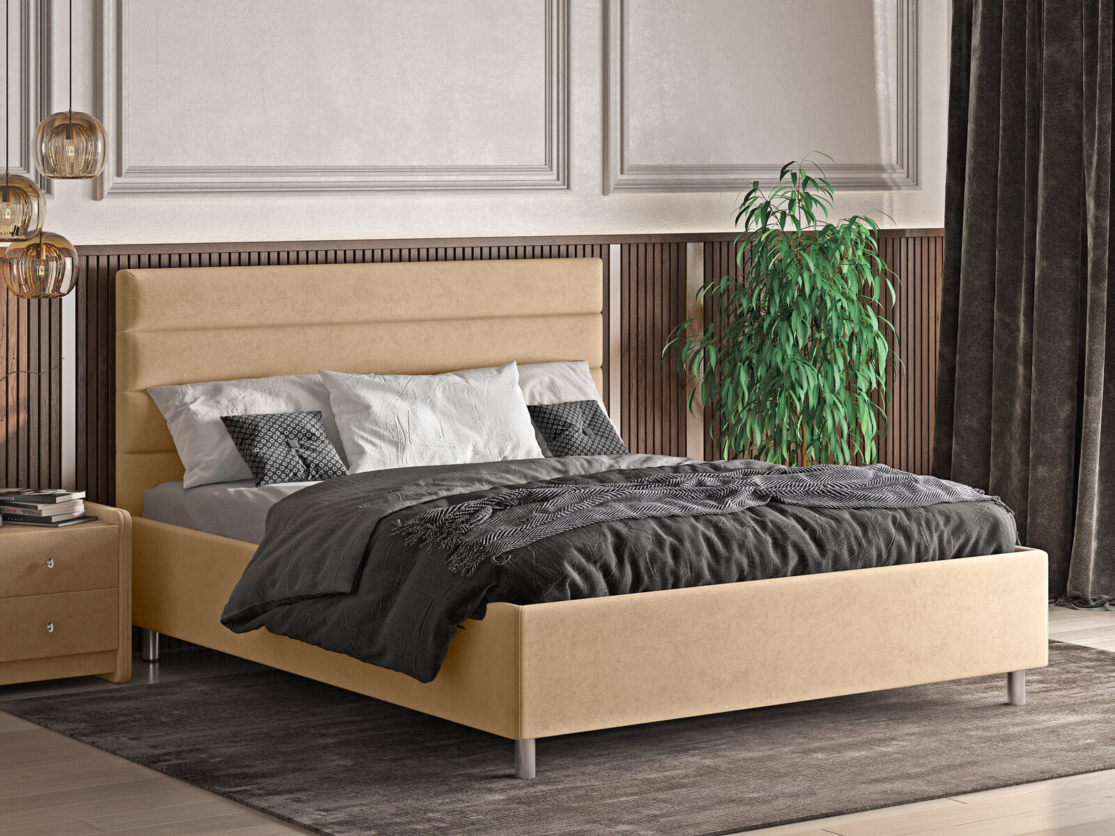 Кровать Левита станет отличным выбором для современных интерьеров, привнося уют и гармонию в любое помещение. Горизонтальная стёжка украшает мягкое изголовье кровати, придавая объем и создавая дополнительный комфорт.