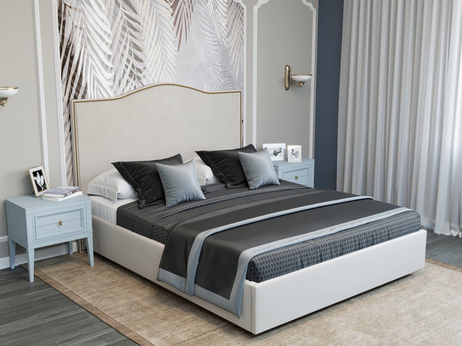 Кровать Сальвадор - стильная, элегантная модель создаст особенную атмосферу вашей спальни. Линия изгиба изголовья придает кровати утонченность, а отделка металлическими гвоздиками добавляет шарма