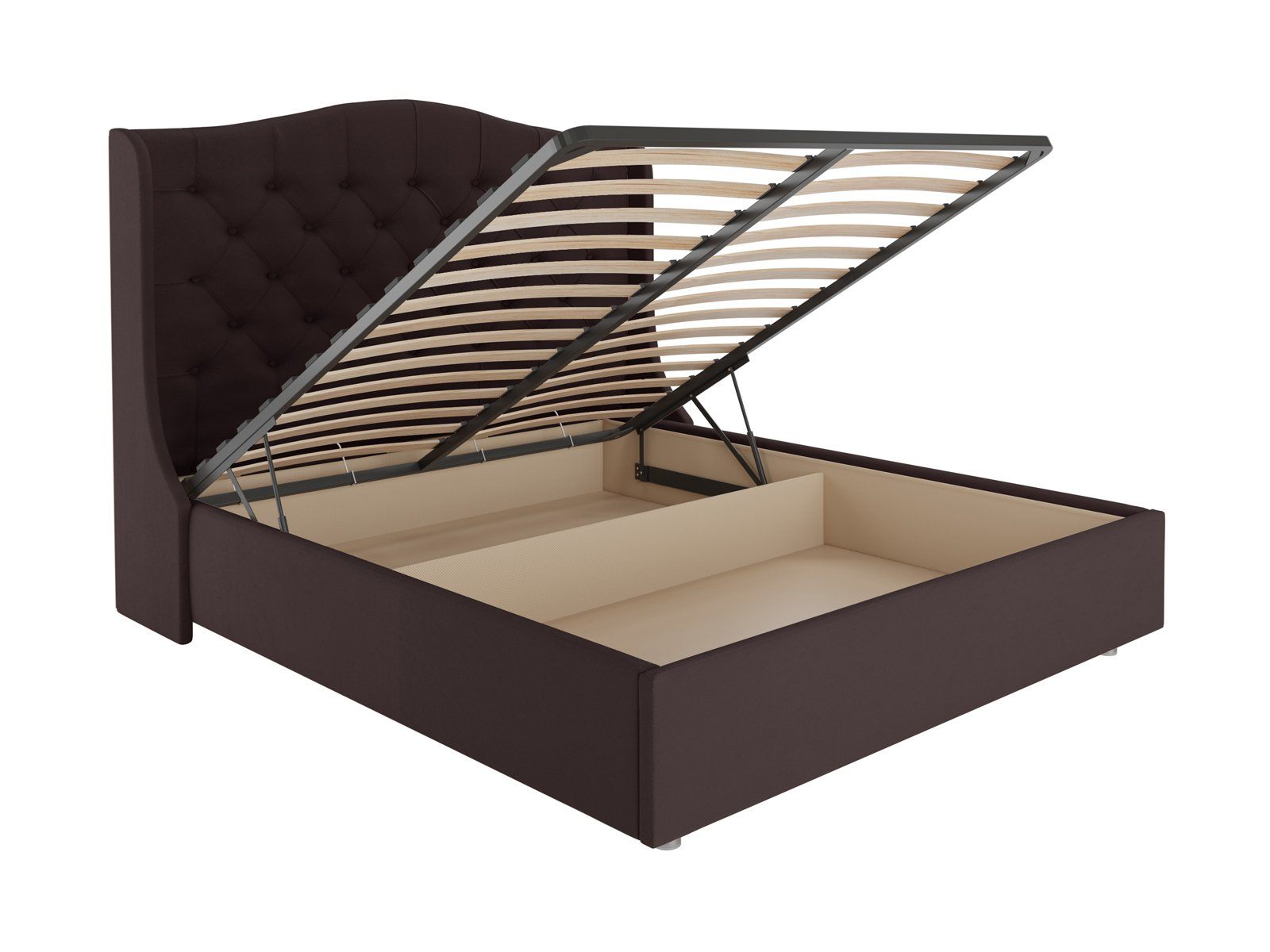 В комплектации с подъемным механизмом кровать имеет вместительный бельевой короб с двумя отделениями.