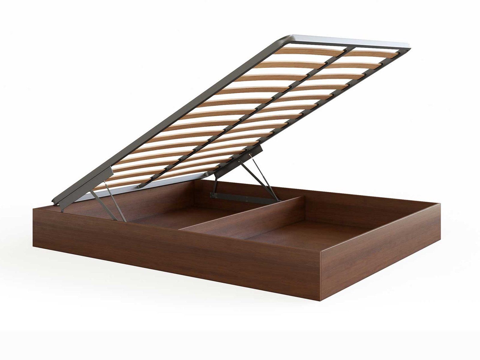 Кровать Куб представляет собой металлическое основание с ламелями из березового шпона и ящик для белья, которые соединены специальным механизмом подъема, который рассчитан под вес матраса. Ящик изготавливается из мягколиственных пород древесины (МЛПД). Стандартно предусмотрено основание Dream. Требуется сборка. Внешние габаритные размеры: - 4 см по длине и ширине.