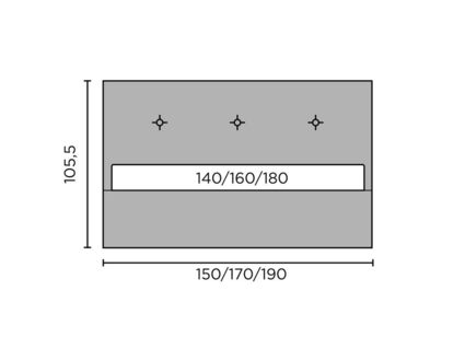Кровать оснащена основанием с ламелями и подъемным механизмом. Рекомендуемая высота матраса до 30 см, вес матраса до 50 кг.