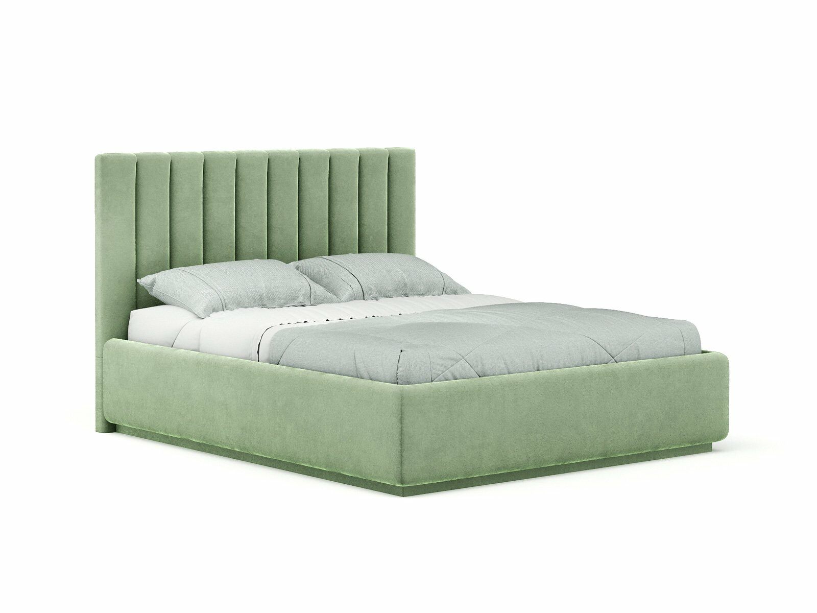 Кровать с мягким изголовьем, выполненным в виде 10 вертикальных панелей (вертикальная утяжка, всегда 10 шт независимо от размера спального места, с увеличением размера спального места увеличивается ширина панели), отличный вариант для спален с низкими потолками: вертикальный полосы на изголовье визуально вытягивают пространство.