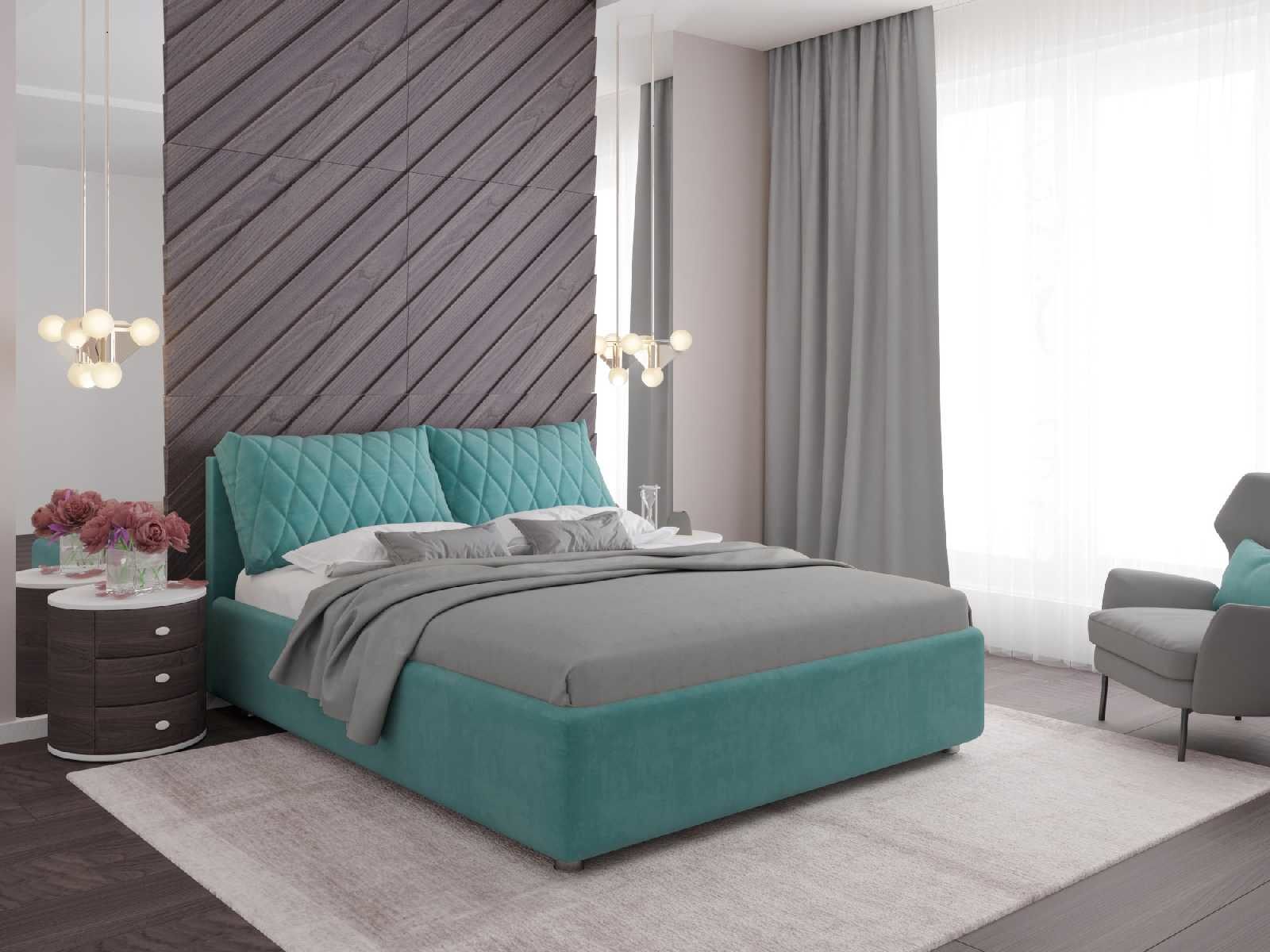 Модель Celeste от Nuvola — современная интерьерная кровать с оригинальным мягким изголовьем, декорированным двумя объемными подушками, которые с легкостью можно отстегнуть от изголовья для перемещения или приподнять на матрас для изменения угла наклона подушки — высокий уровень комфорта и поддержка спины во время чтения книг, просмотра любимых фильмов или работы за ноутбуком!
