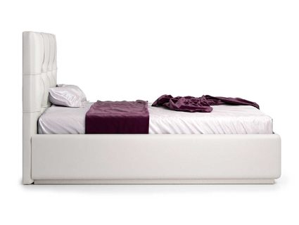Кровать укомплектована IQ с подъемным механизмом и ящиком для белья без дна (дополнительная платная опция - дно к ящику IQ из HDF (ХДФ). Каркас кровати на цоколе, декоративный чехол на цоколе съёмный. Глубина ящика для белья - 30 см, без ограничения нагрузки на ящик.