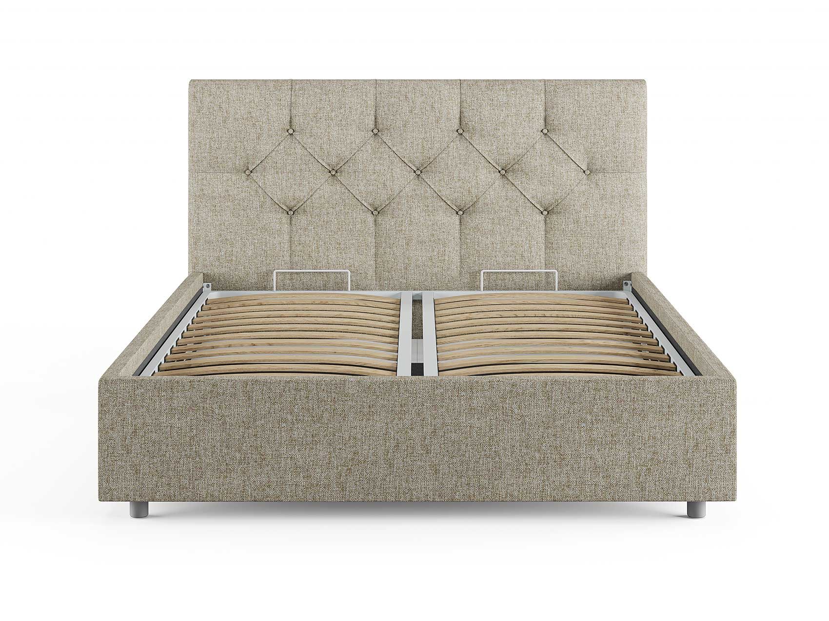 Элегантная классическая кровать с эффектной каретной стяжкой. Модель изготовлена из ДСП. При необходимости кровать может быть укомплектована подъемным механизмом с бельевым ящиком или трансформируемым основанием Aquarius (размером 160-200).