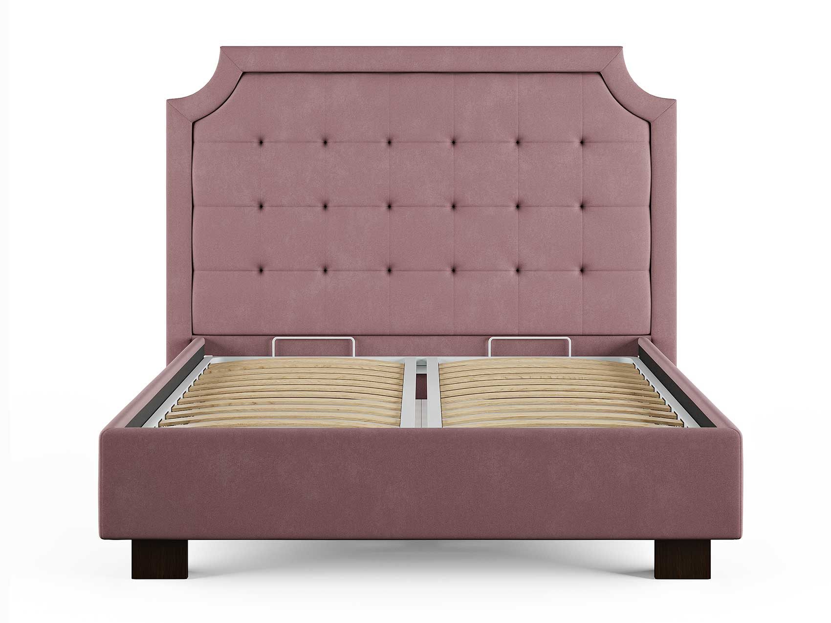 Кровать прекрасно впишется в интерьер от классики до современного стиля и cтанет отличным решением для просторной светлой спальни. Высокая спинка с мягкими утяжками и массивной рамкой выглядит эффектно. Задняя часть спинки кровати выполнена в основной ткани, благодаря этому ее можно установить в центре комнаты. Увеличенная прочность кровати достигается за счет металлического каркаса по периметру. Массивные ножки, выполнены из бука цвета венге. Расстояние от пола до царг способствует легкой уборке под кроватью, в том числе роботом – пылесосом. При желании возможно установить подъемный механизм с бельевым коробом либо трансформируемое основание Aquarius.