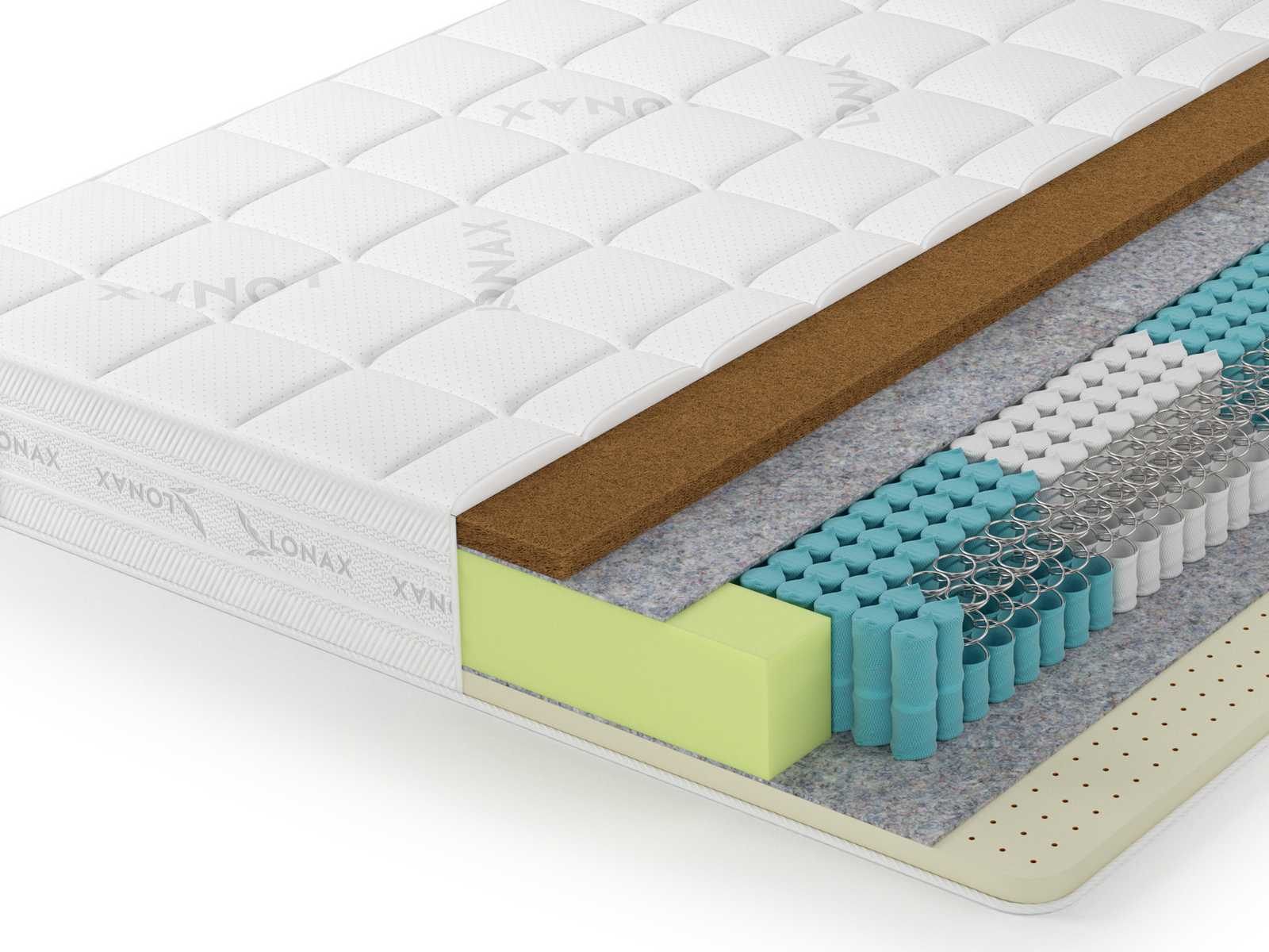 Ортопедический матрас Lonax Latex-Cocos S1000 5 Zone построен на основе натуральных материалов. Модель двусторонняя и имеет абсолютно разную жесткость сторон.