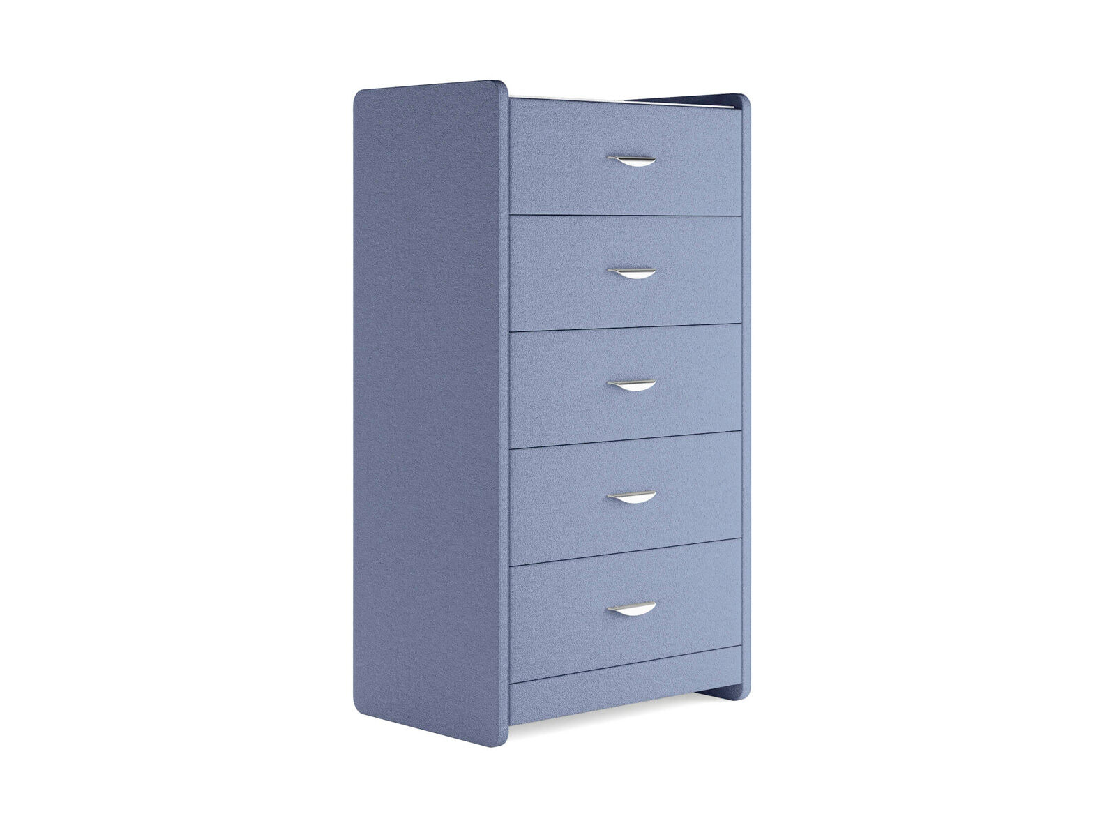 Комод с 5 ящиками сдержанного дизайна дополнит любой интерьер и сделает его более функциональным. Каркас комода и фасад ящиков покрыты обивочным материалом и выполняется в 43 вариантах цветового исполнения. Для удобства использования и продления срока эксплуатации, рекомендуется использовать стеклянную накладку. Накладка используется в качестве столешницы для тумбы и защищает ее от повреждений и загрязнений. Стеклянная столешница заказывается дополнительно.