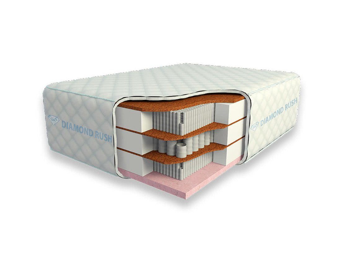 Матрас Cocos-2 Ergo Lux 40sm+ от компании Diamond Rush, имеет целых три пружинных механизма в своей конструкции и общую высоту не менее 47 см. Подобное изделие представляет собой поистине королевский матрас с самой надежной и анатомической поддержкой. Ведь блоки независимых пружин подразумевают точечную поддержку каждой части тела спящего, точнейшее повторение каждого изгиба его тела. А если таковых в матрасе три, то и предполагаемый эффект в три раза лучше.