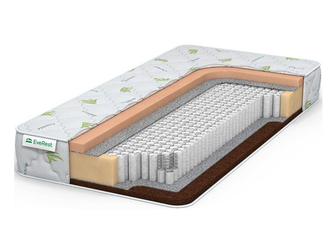 Двусторонний ортопедический матрас EveRest Кокос мемори S1000 получил две уникальные спальные поверхности. Одна половина модели представлена высокой жёсткостью, а вот вторая получила не просто яркие параметры мягкости, а усиленные эффектом памяти формы.