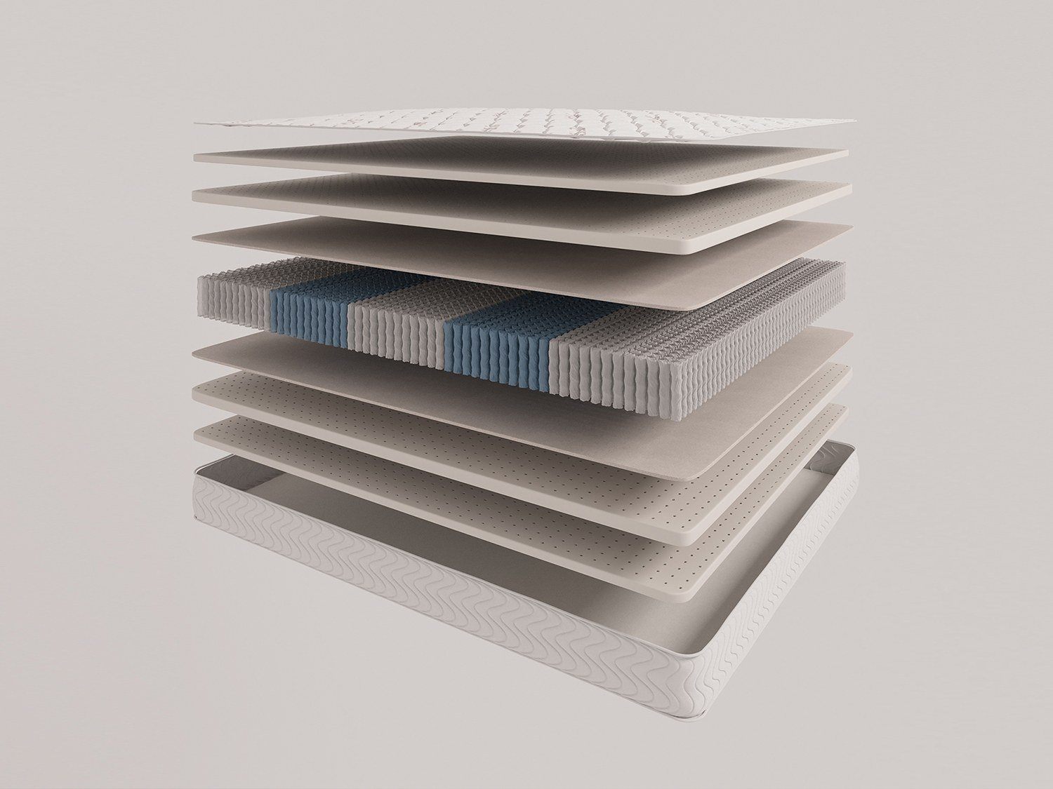 В основании матраса; независимые пружинные элементы фирмы AGRO (Германия) Мультипакет - в котором 1020 пружин на спальное место (510 пружин на 1 м2), оказывают максимально положительный ортопедический эффект