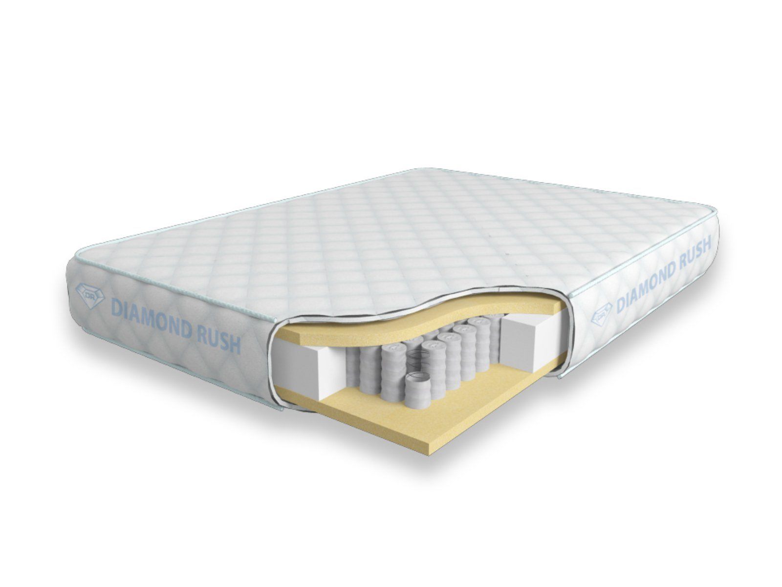 Матрас Diamond Rush Full Basic 725SD имеет в своей основе независимый пружинный блок 725, состоящий из пружин диаметром 5-6 см. В качестве настилочных слоев с обеих сторон пружинного блока используются листы качественного мебельного поролона, который задает матрасу среднюю жесткость и невысокую стоимость.