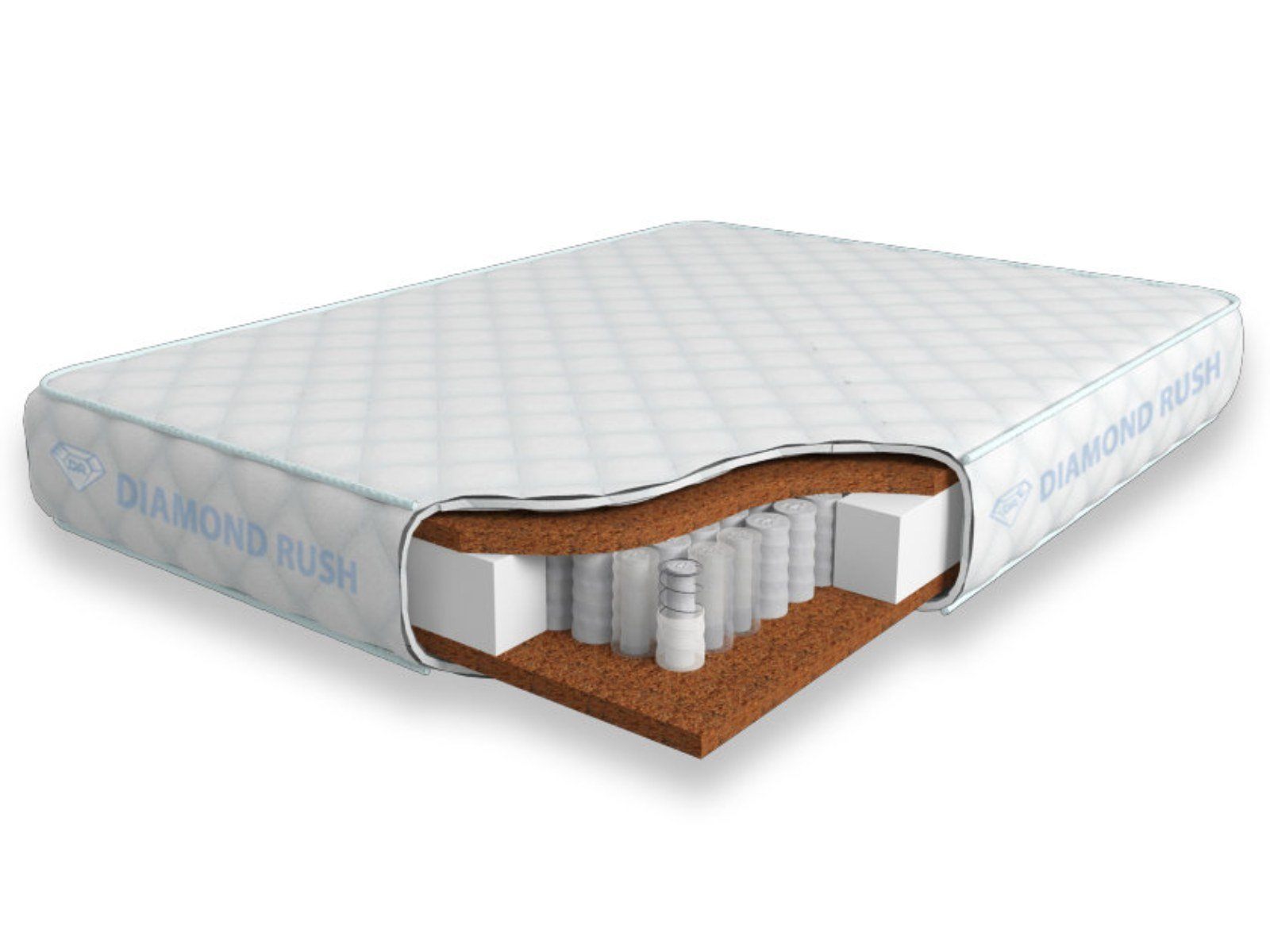 Diamond Rush Full Cocos DP LD имеет в своей основе независимый пружинный блок DP, состоящий из сдвоенных пружин диаметром 3-4 и 5-6 см. В качестве настилочных слоев с обеих сторон пружинного блока используется латексированная кокосовая койра, которая придает матрасу повышенную жесткость. Вся эта конструкция одета в качественный чехол из трикотажа. Эта ткань безопасна для кожи, не боится стирки и химчистки.