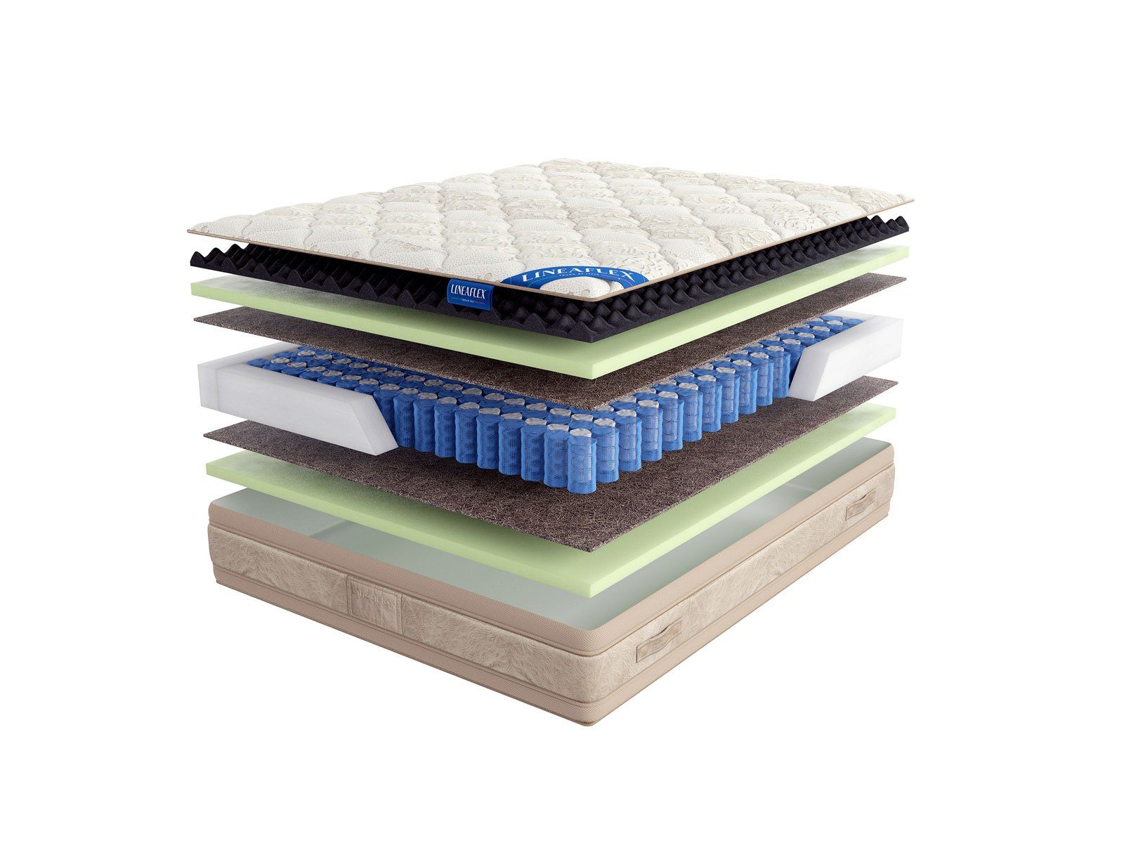 Изделие относится к премиум-сегменту, поэтому особое внимание производителя уделено материалам, на которых базируется матрас. Модель не имеет весового ограничения и свободно выдерживает нагрузку – 200 кг на спальное место.