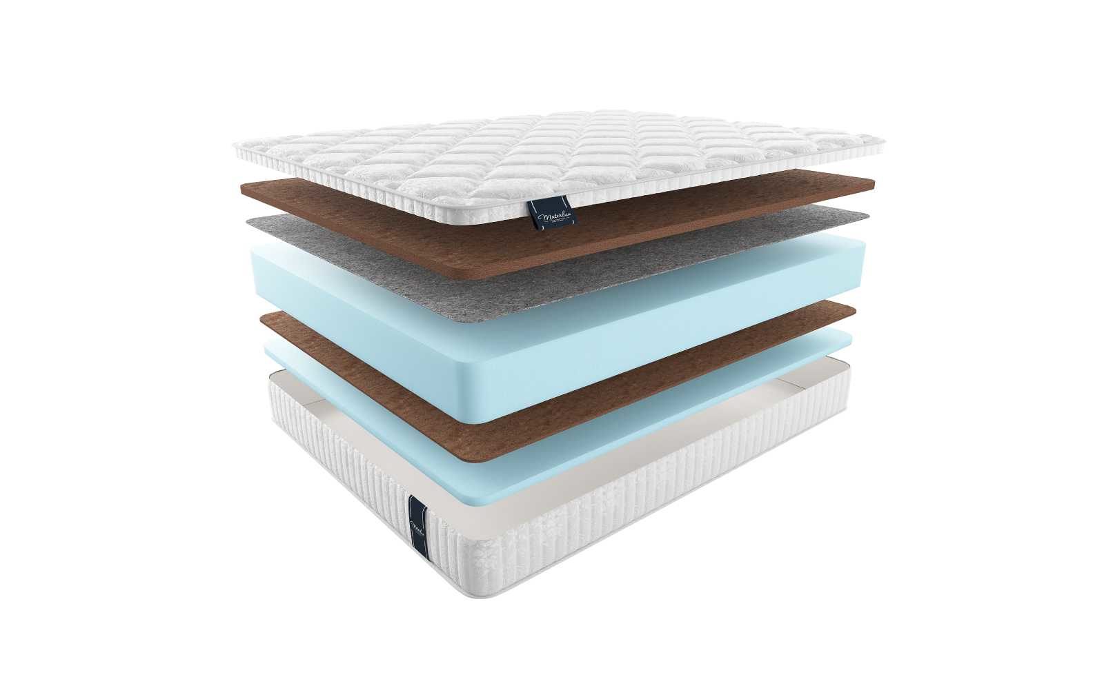 Матрас состоит из двух материалов. В качестве природного слоя выступает койра кокоса, а искусственным наполнителем является ортопедическая пена.