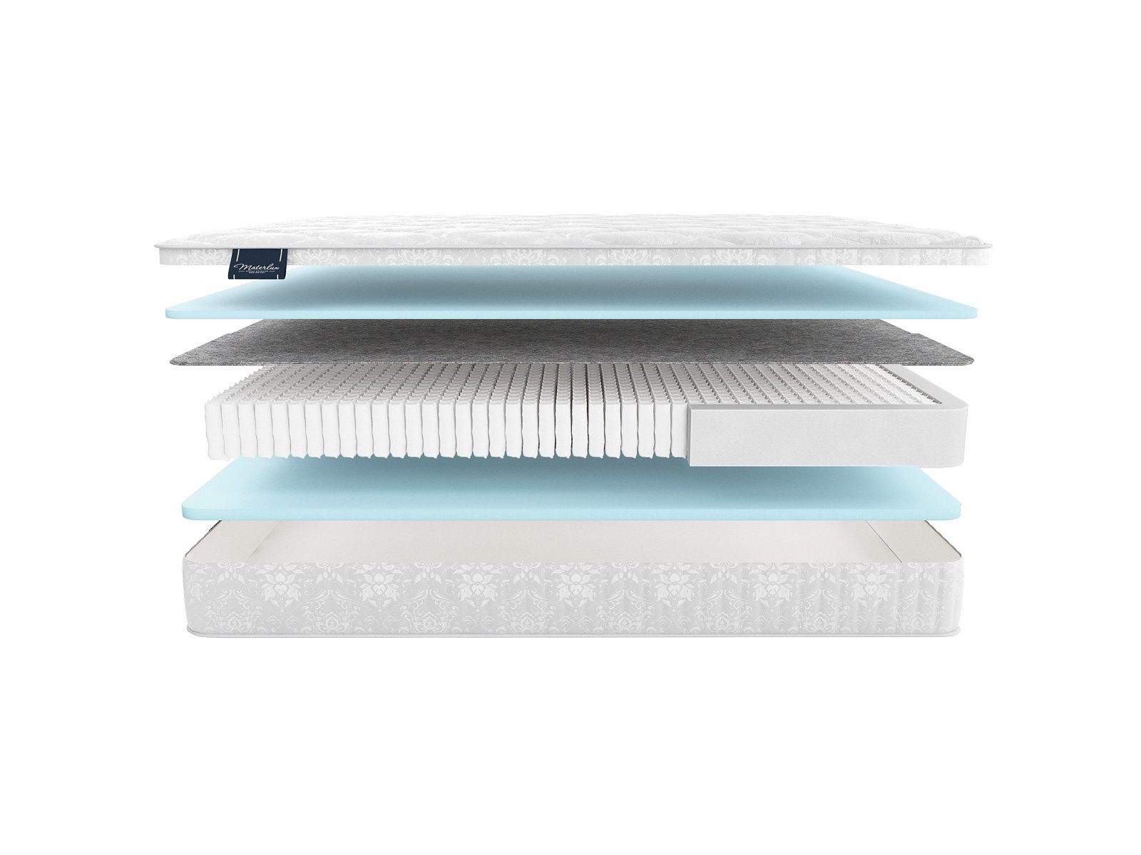 Для дополнительного комфорта матрас усилен каркасом 10 см по периметру, что дает ряд дополнительных преимуществ: он прекрасно держит вес, хорошо восстанавливается после нагрузки, а срок его службы становится больше.